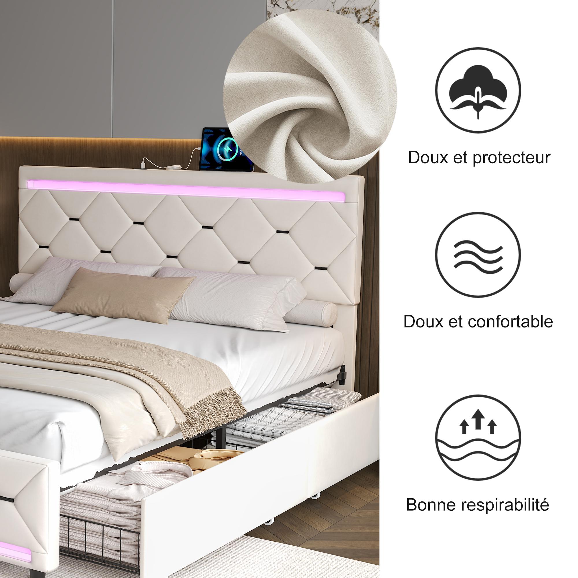 De 7-kleurige LED-verlichting, geïntegreerd in het hoofdeinde en voeteneinde en verstelbaar met een afstandsbediening, stelt u in staat om een unieke en persoonlijke lichtsfeer te creëren.
