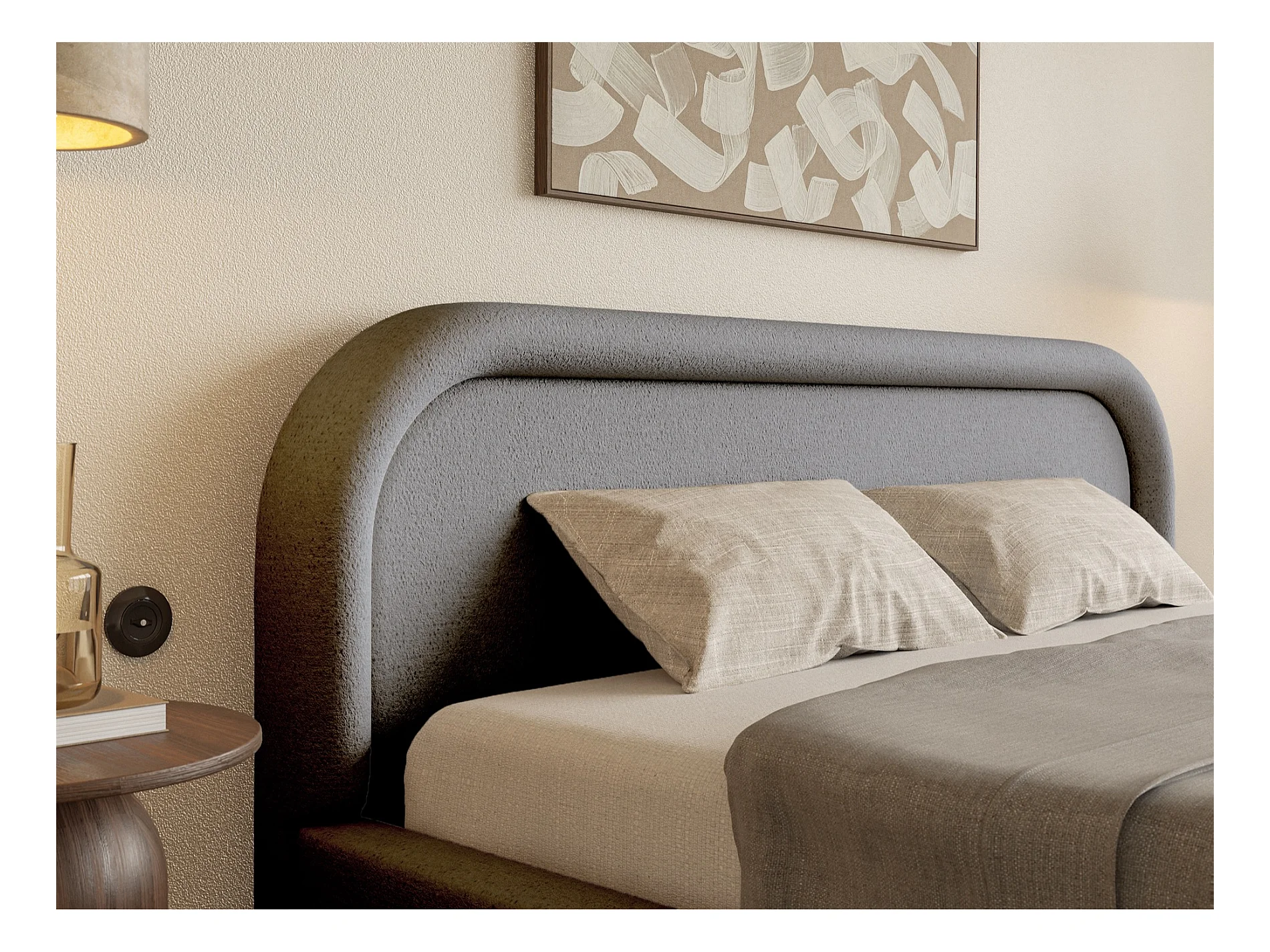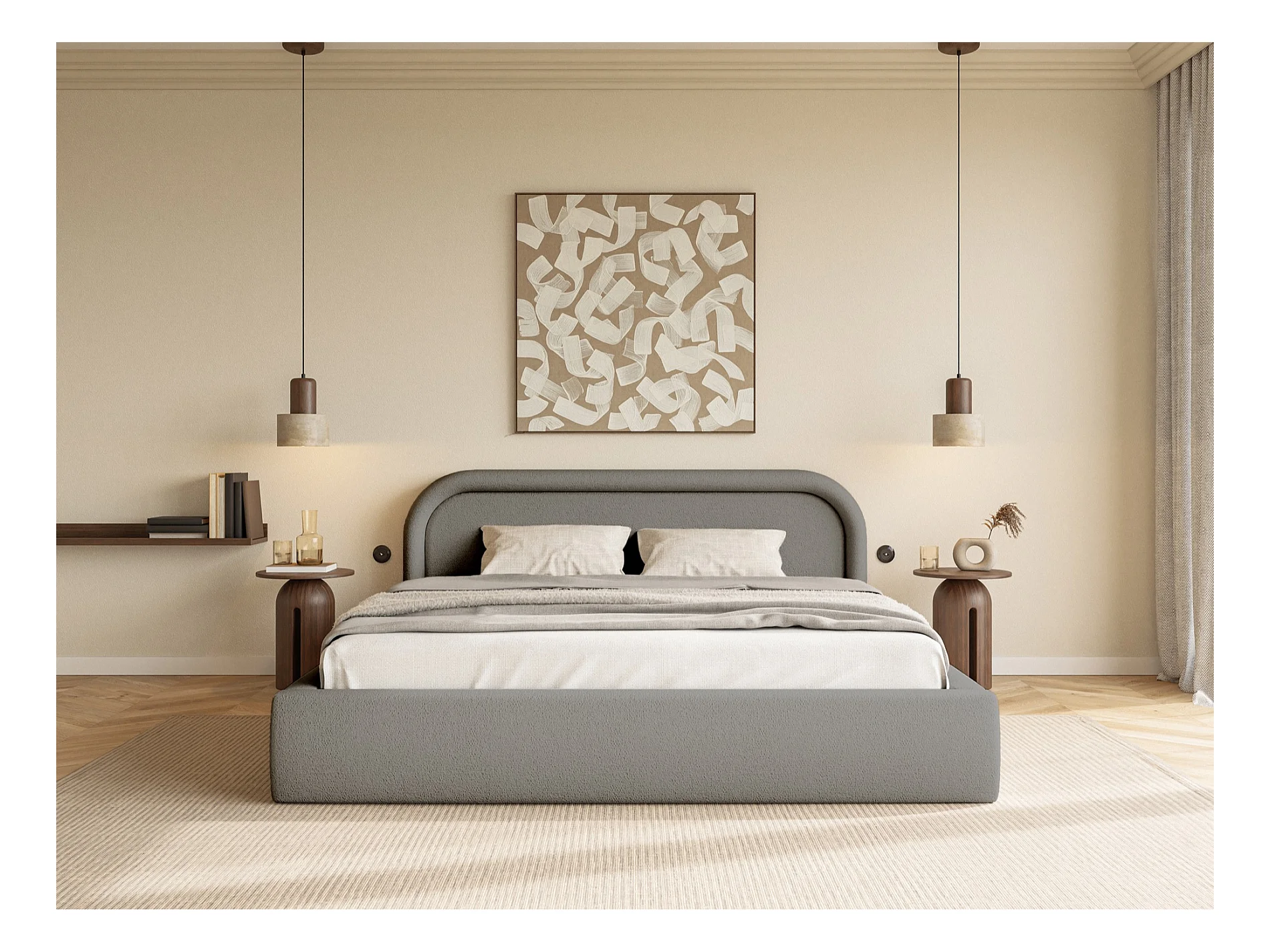 Tweepersoonsbed gestoffeerd - 160x200 cm - in grijze chenillestof - LUCERA