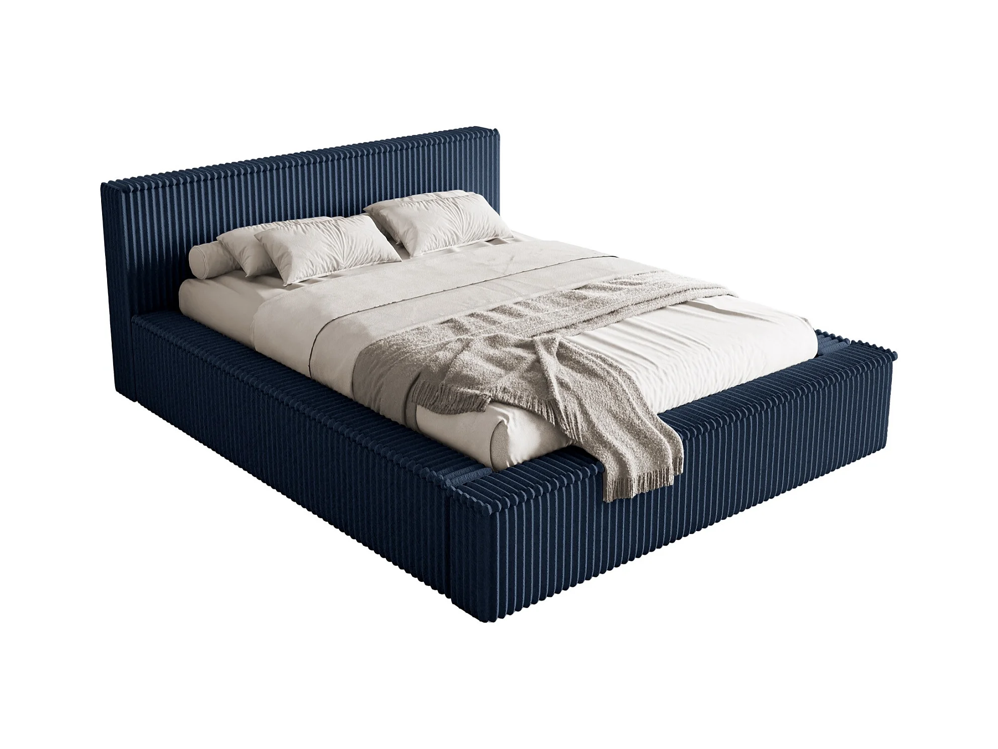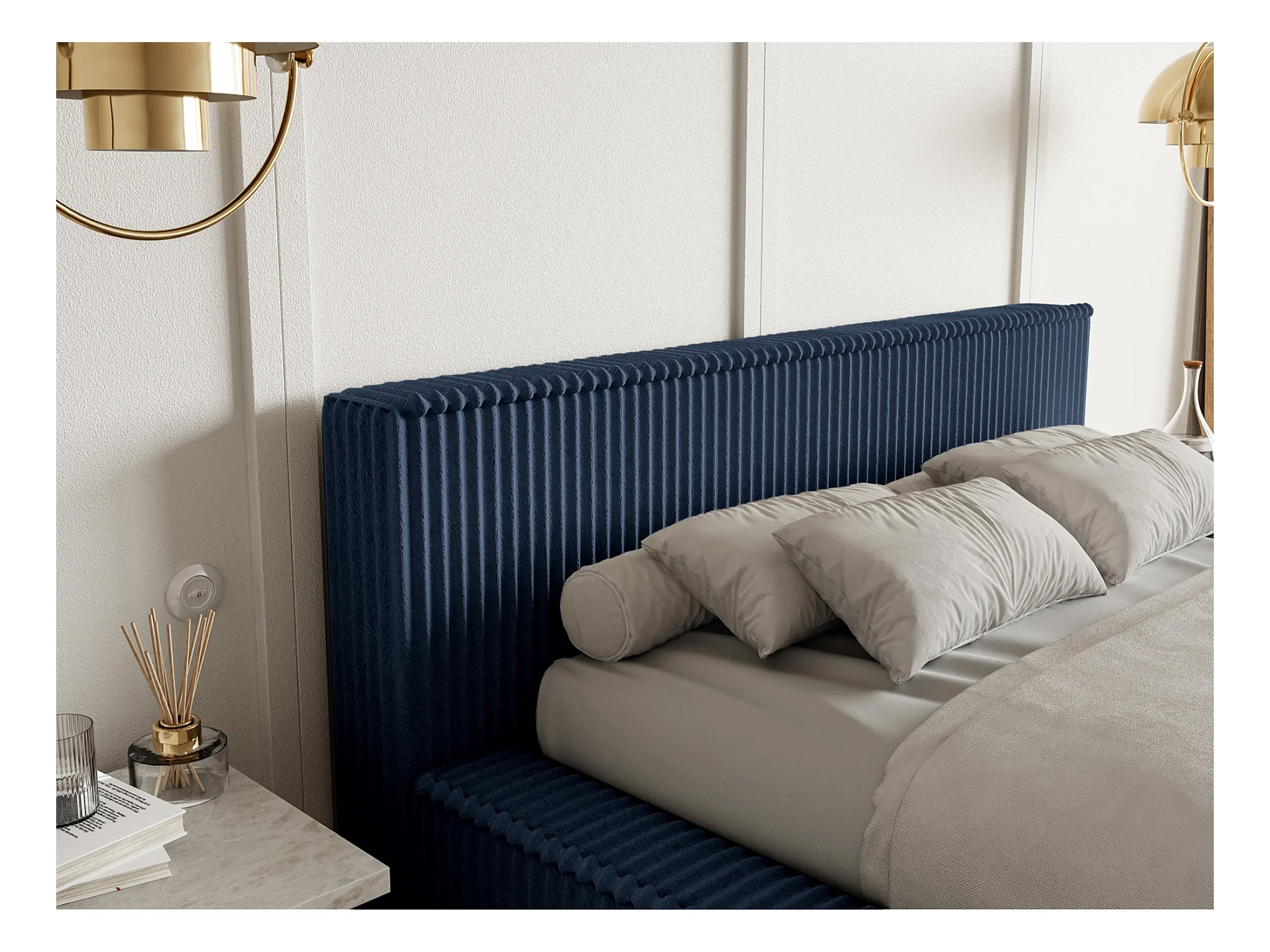 Opbergbed met hoofdeinde - 180x200 cm - in marineblauw corduroy - AFFOLIO