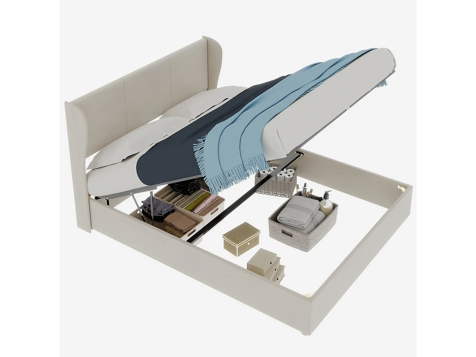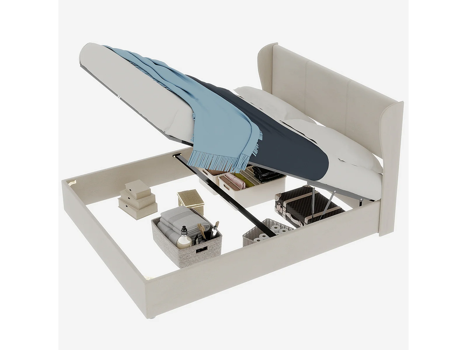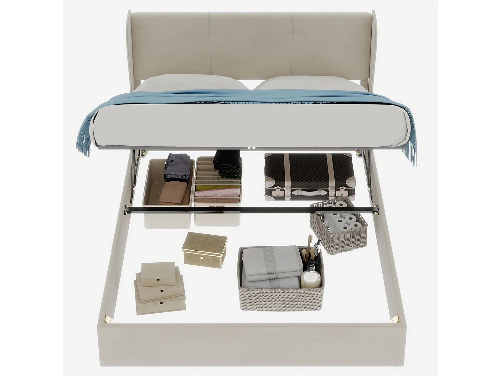 Opbergbed voor volwassenen 140x200cm - Gestoffeerd bed in beige fluweel (matras niet inbegrepen)