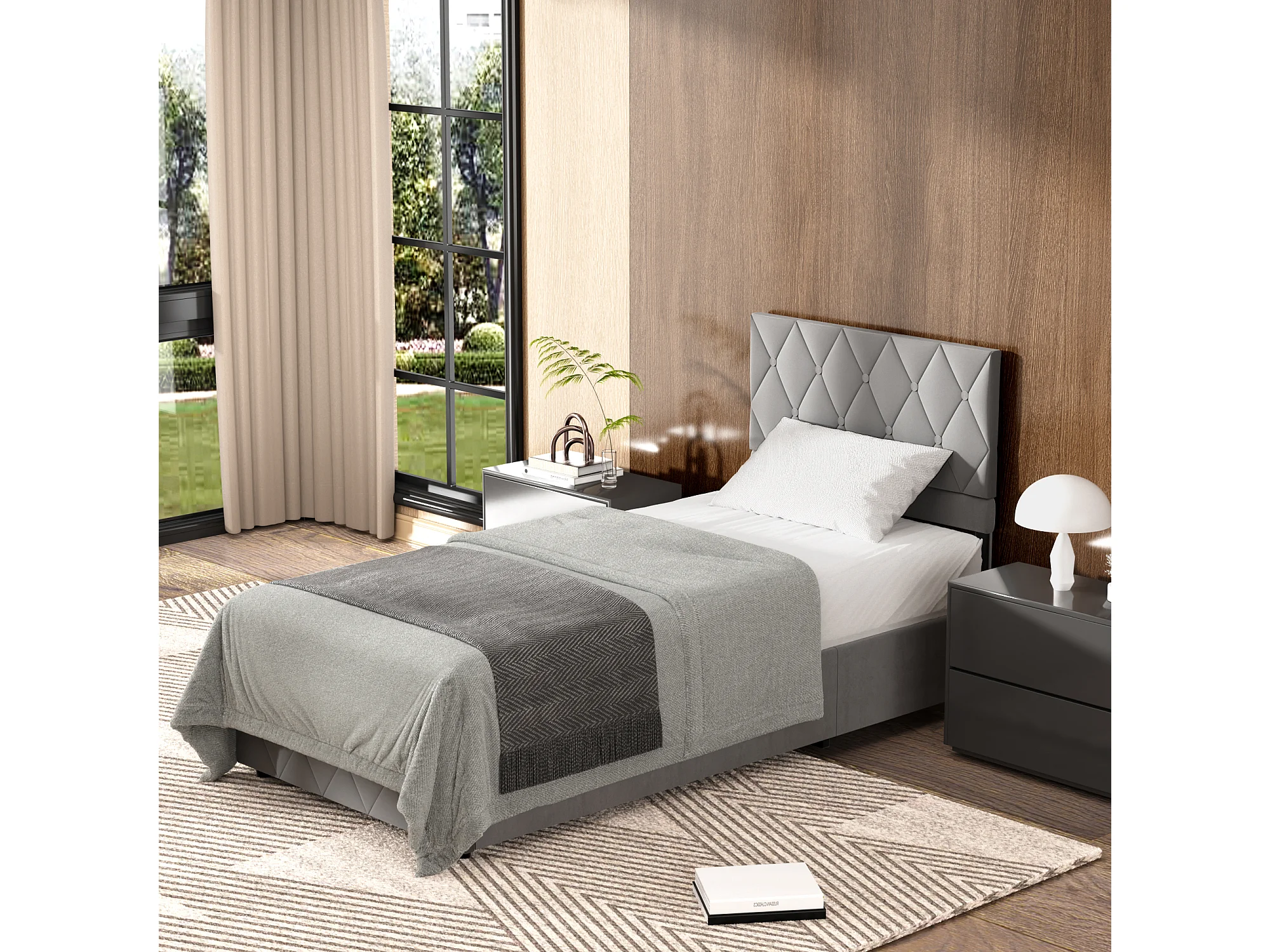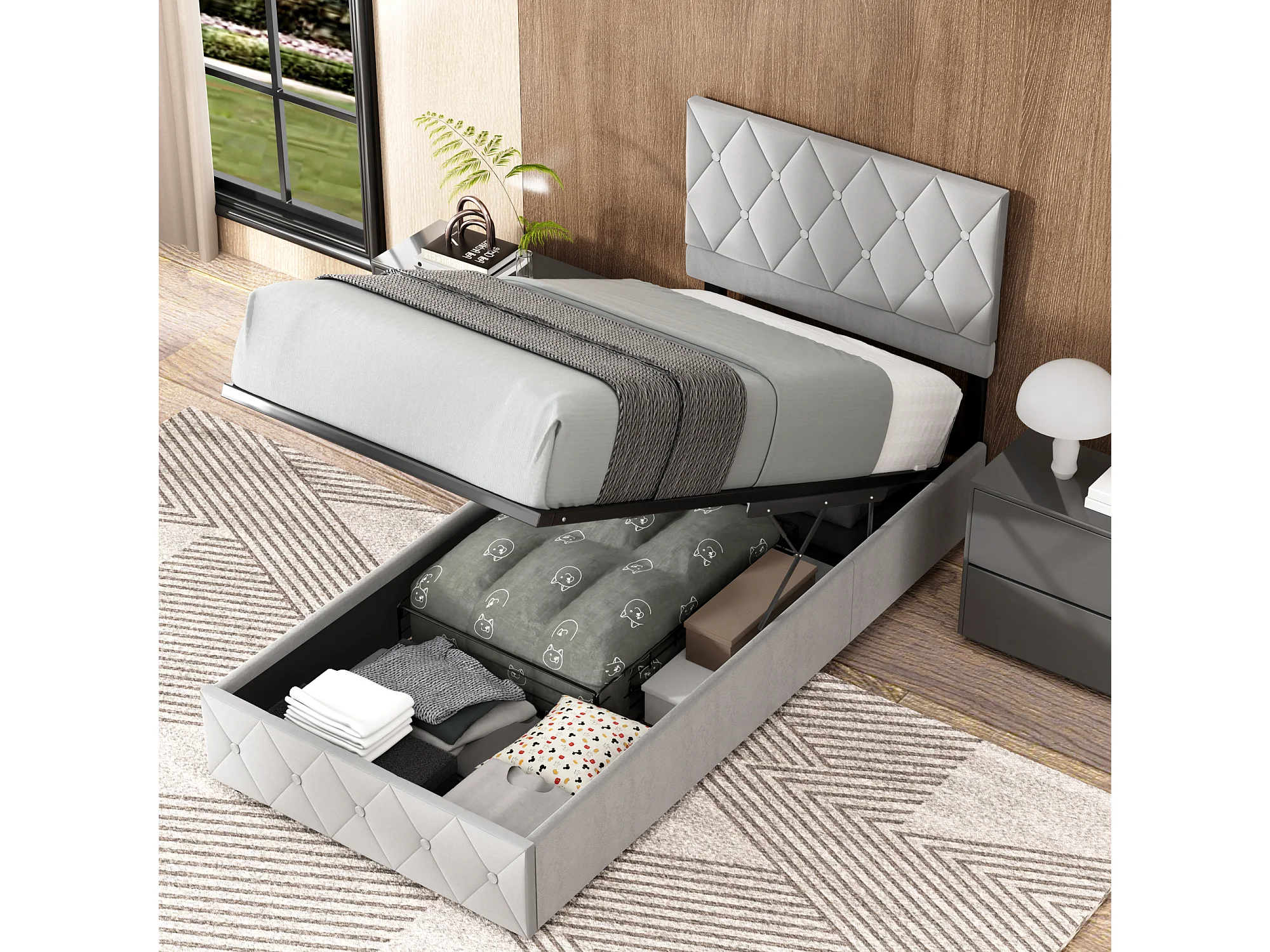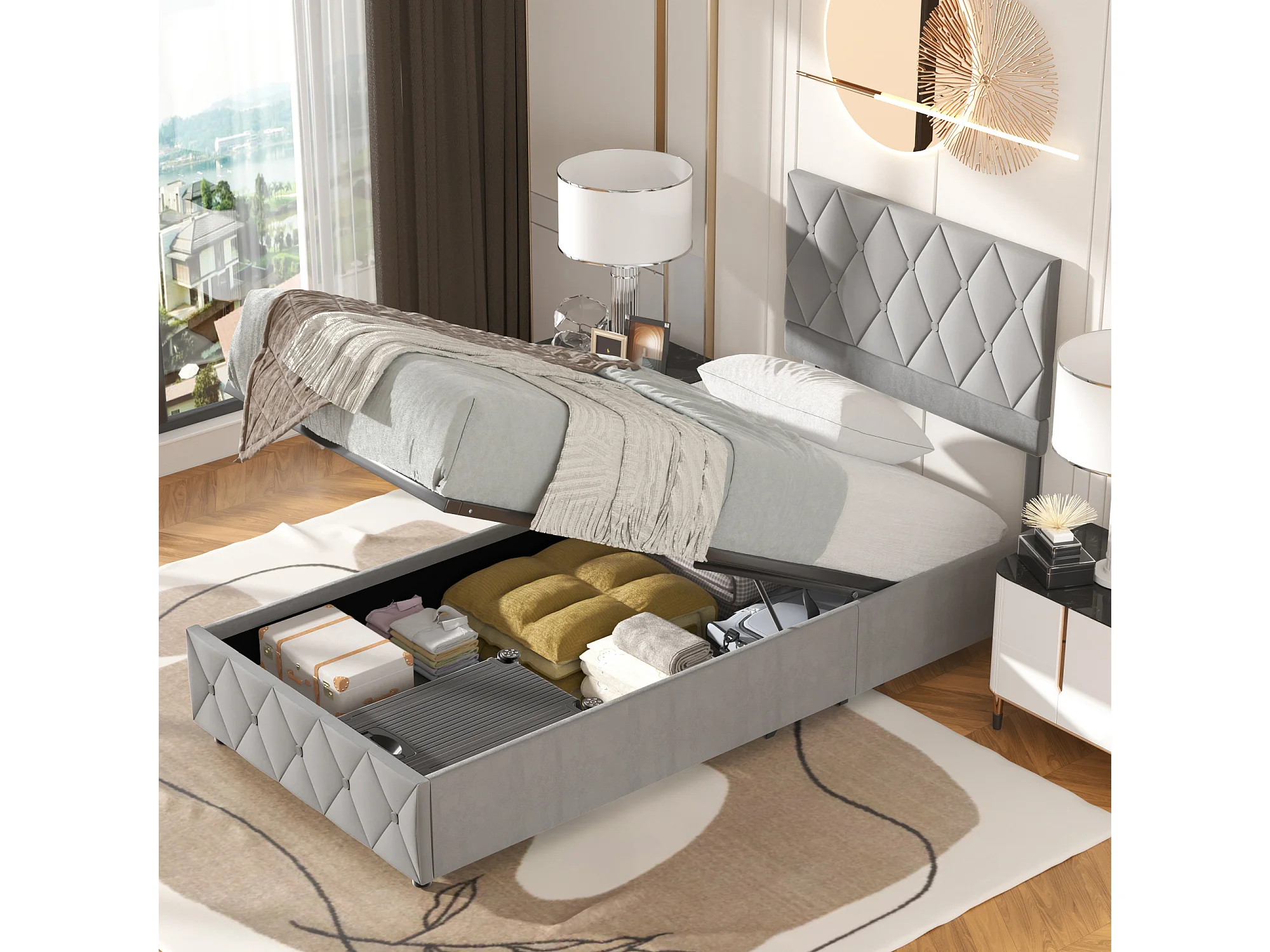 Opbergbed voor volwassenen 90x200 cm, verstelbaar hoofdeinde en lattenbodem, elegant en modern, grijs fluweel, matras niet inbegrepen