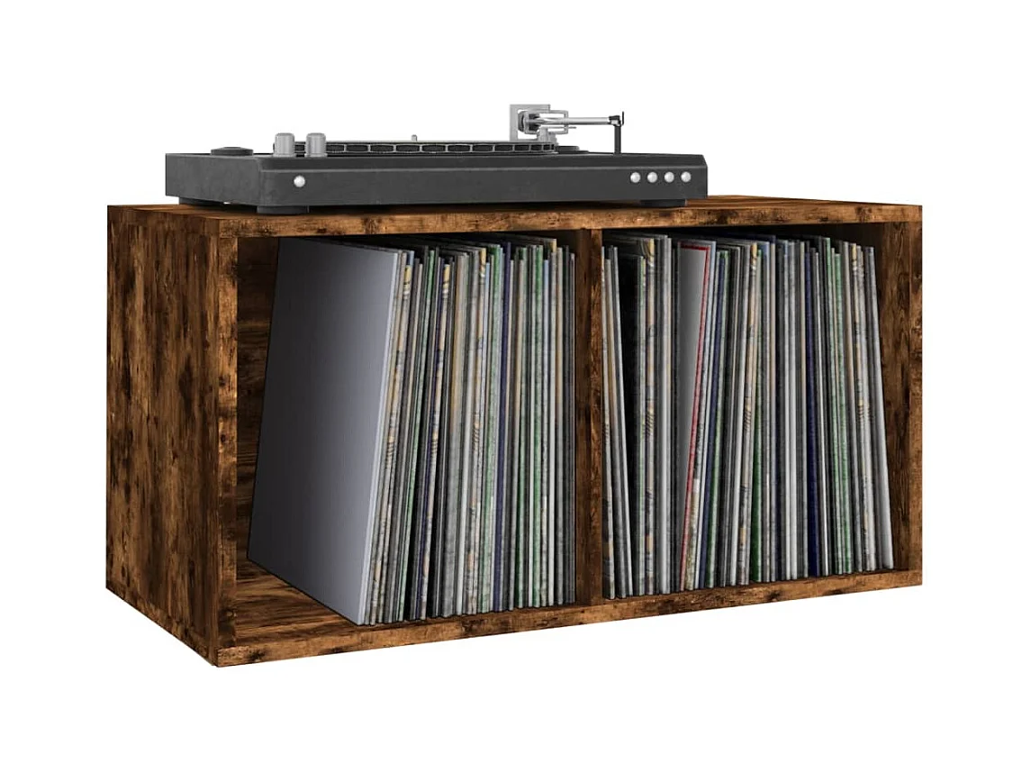 Opbergbox voor LP's 71x34x36 cm bewerkt hout gerookt eikenkleur
