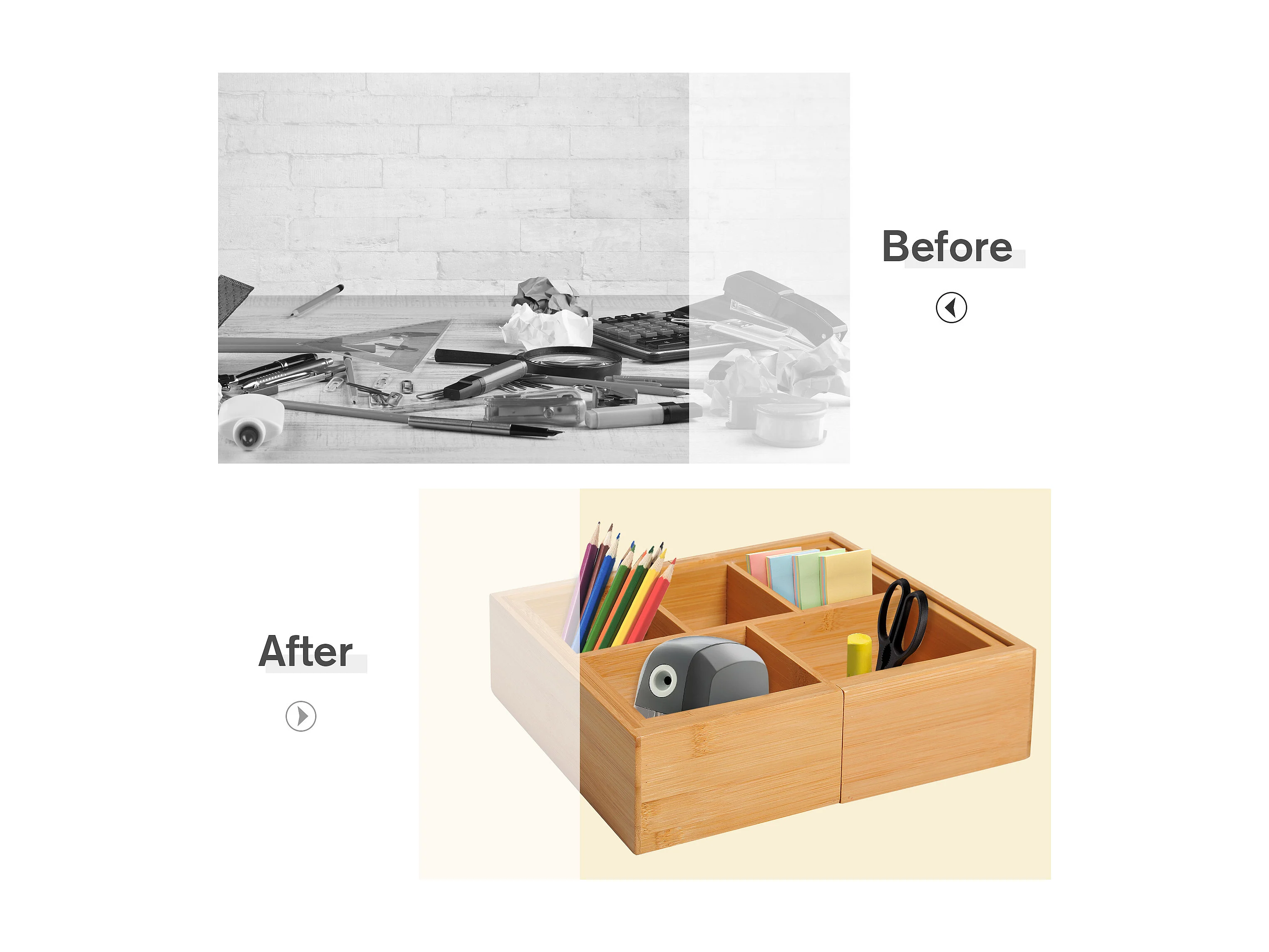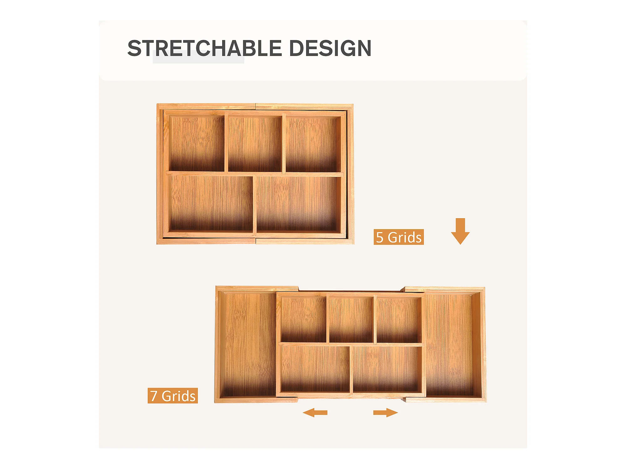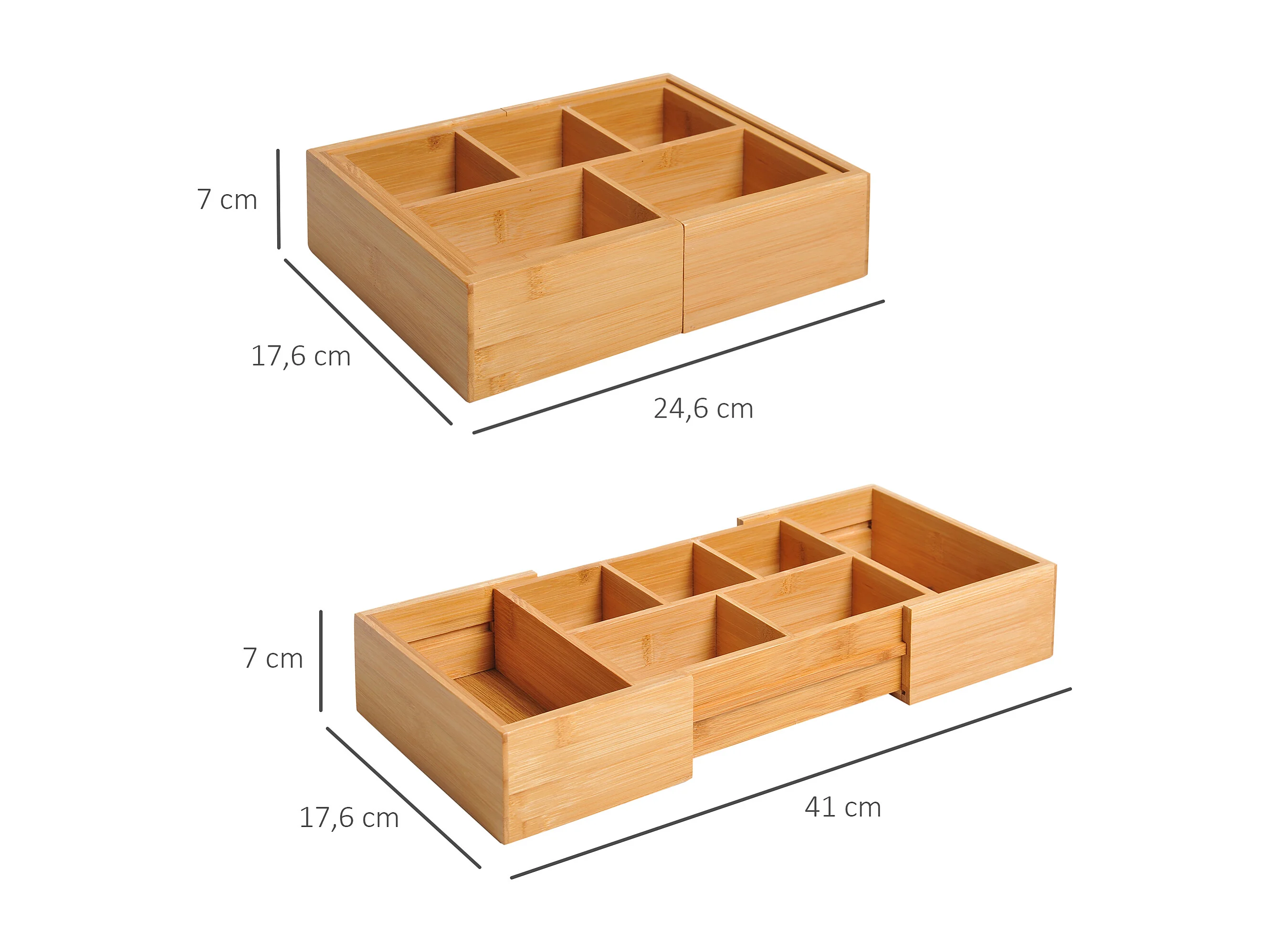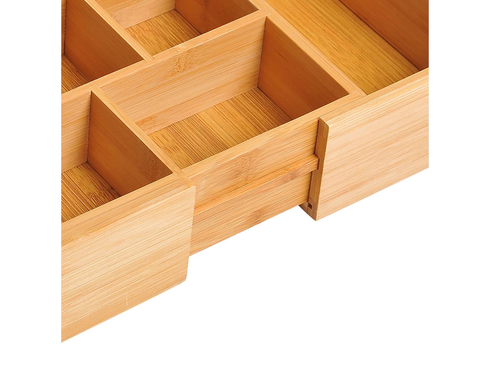 Opbergdoos met uitschuifbare lades, gemaakt van natuurlijk bamboe (24,6x17,6x7 cm)