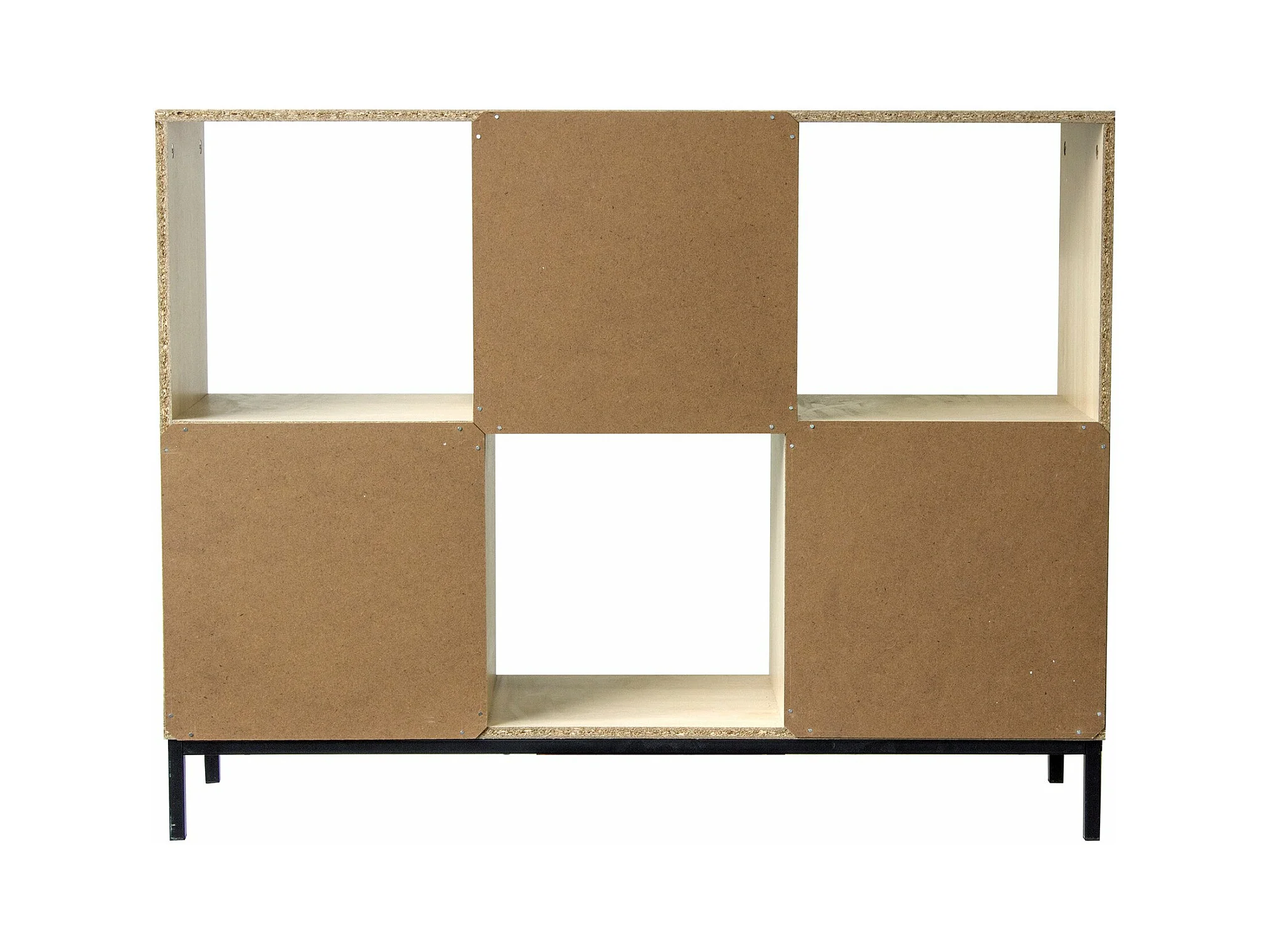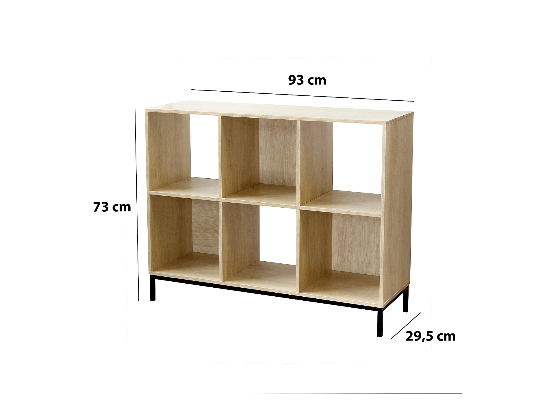 Wandrek met 4 niveaus in houtdecor met zwarte metalen zijkanten H133,5 cm - EKLO