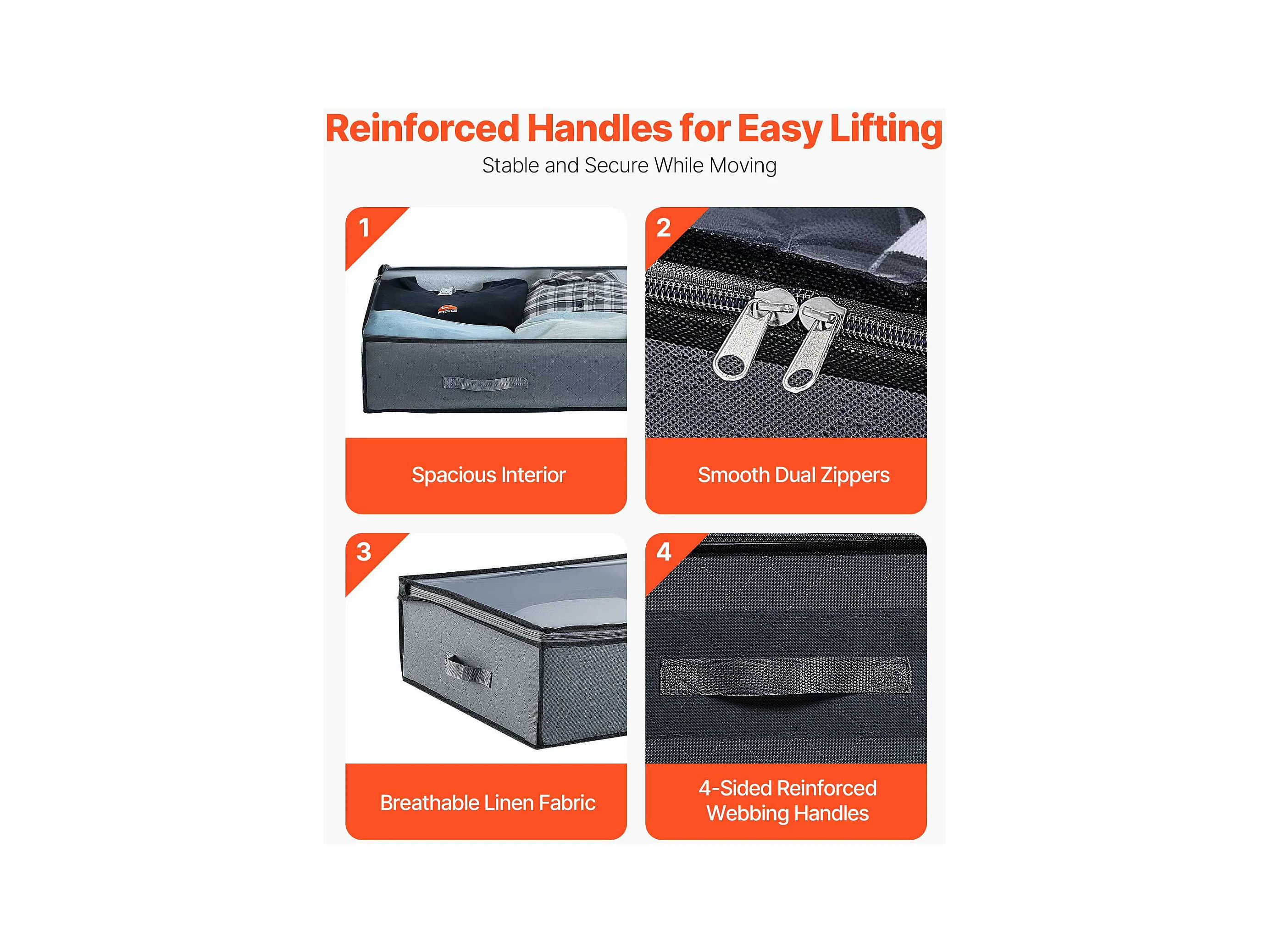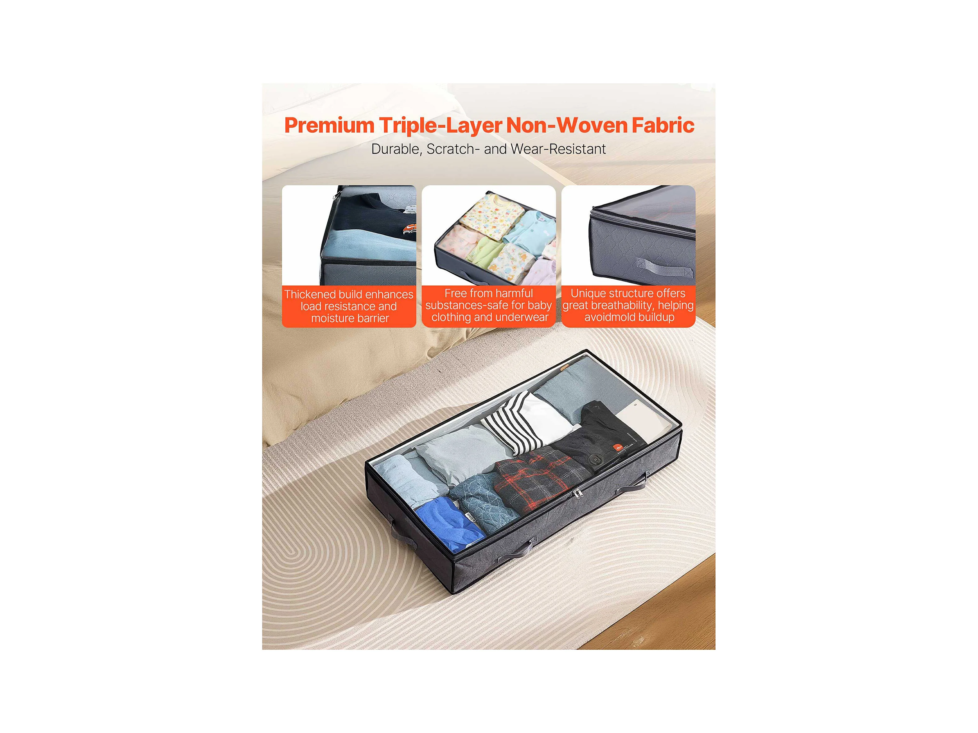 Opbergzakken SucceBuy voor Onder Het Bed, 6 Stuks van 90 Liter, Schoenenorganizer voor Onder Het Bed met Transparante Deksels, voor Kleding, Grijs