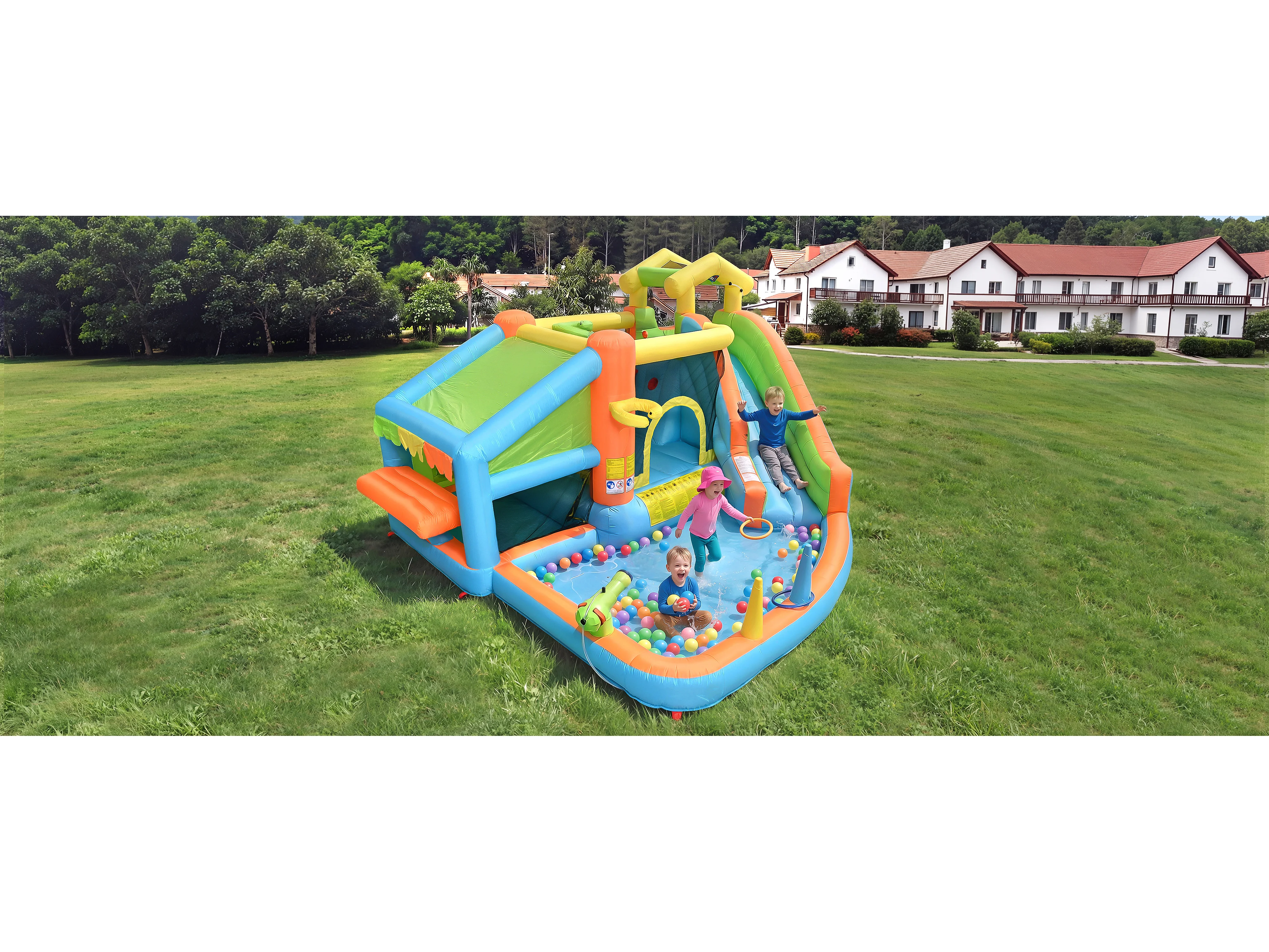 Opblaasbaar kasteel voor kinderen van 3 tot 10 jaar - 360 x 350 x 200 cm - met blower + glijbaan + zwembad - Oxford - Meerkleurig