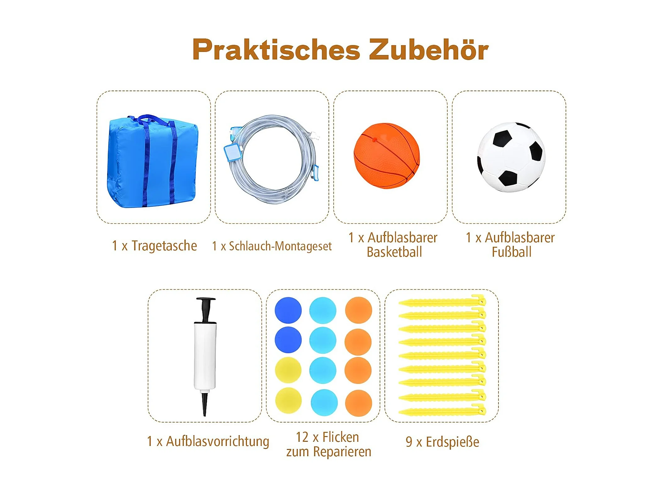 Springkasteel met blazer, waterpark met twee glijbanen, klimwand, basketbalmand, kinderbadje en waterkanon, incl.400 x 361 x 255 cmAB92368