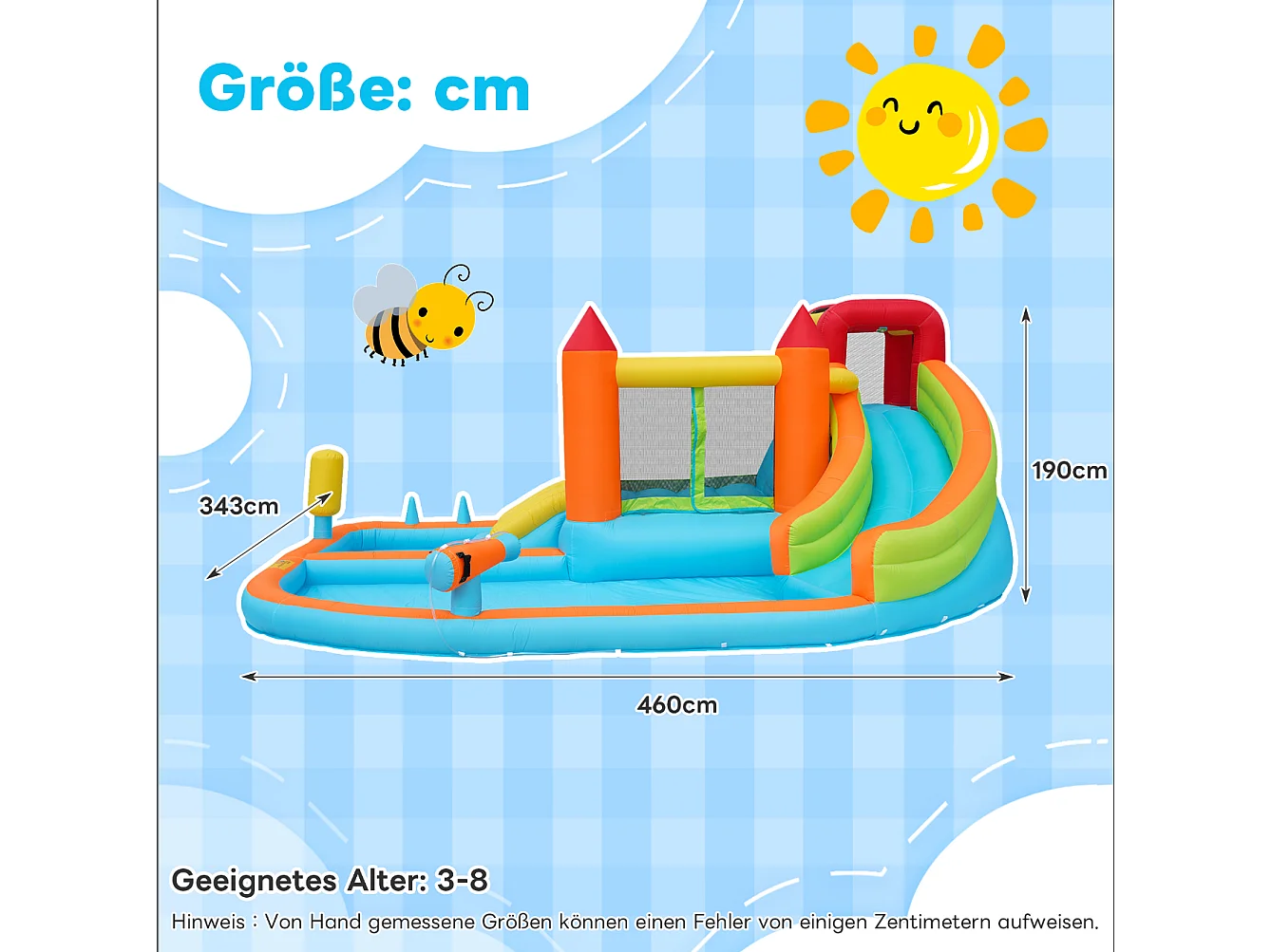 Opblaasbaar waterkasteel met glijbaan trampoline basketbalring waterpistolen dubbel zwembad voor droog en nat gebruik oranje