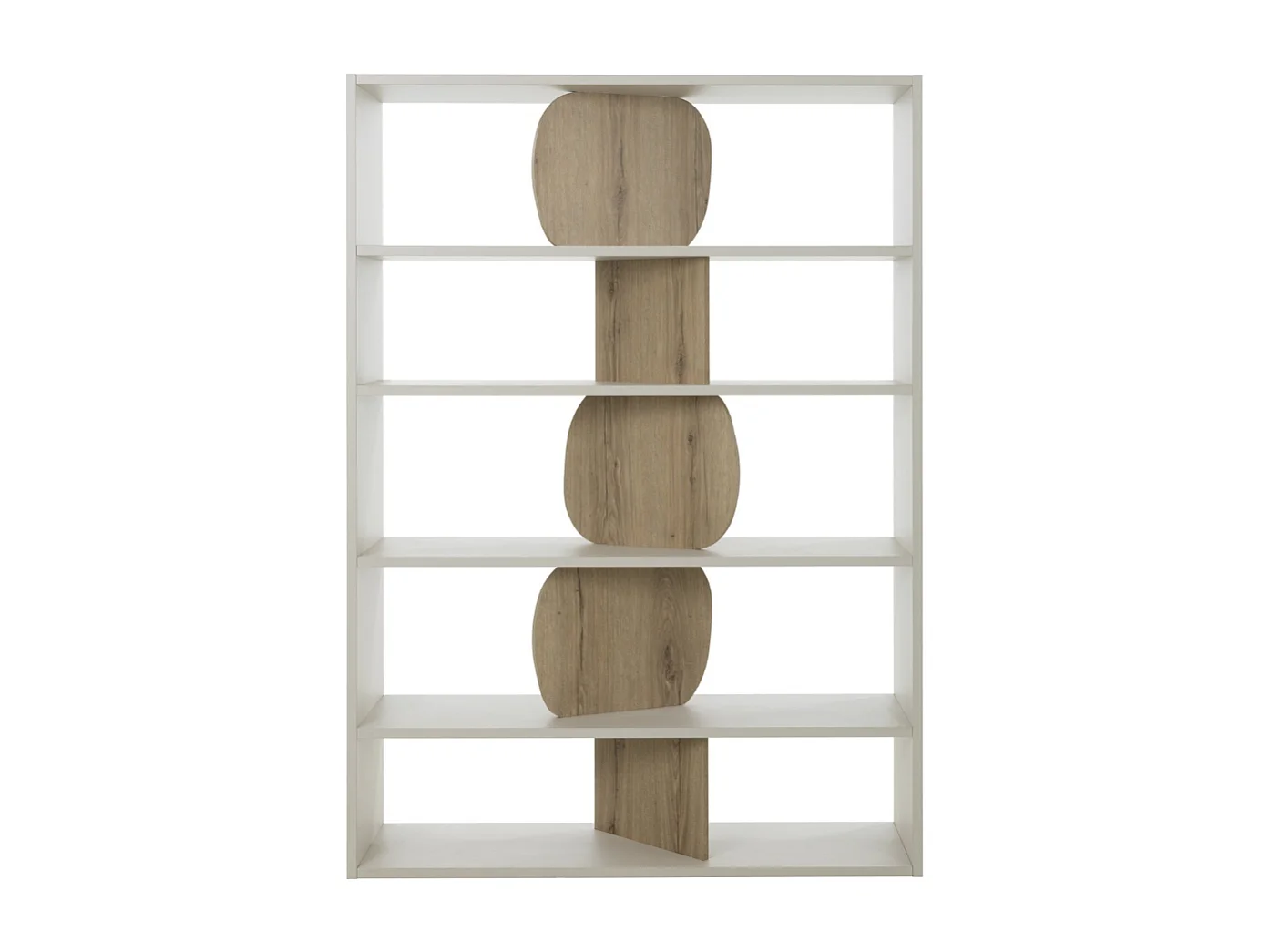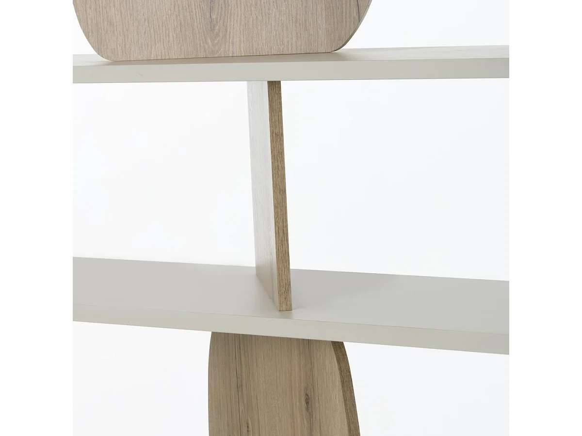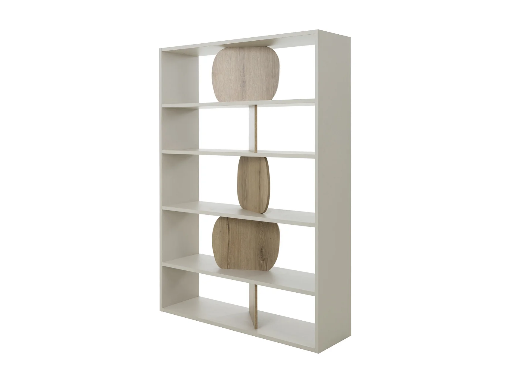 Open boekenkast met geometrische uitsnijdingen greige- en eikendecor - MANOSQUE