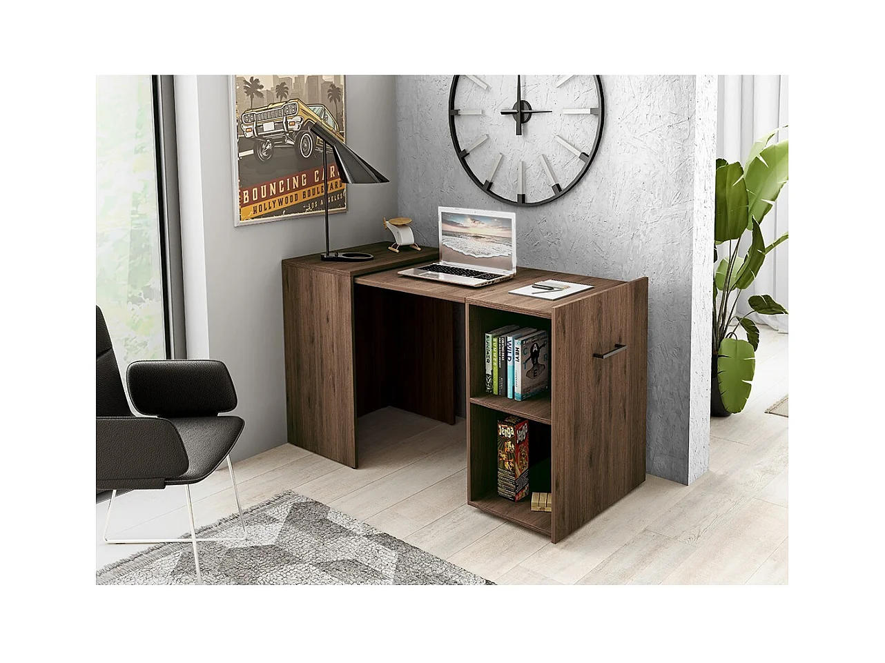Opklapbaar bureau voor kleine ruimtes, collectie FLIP, in donkereiken kleur.