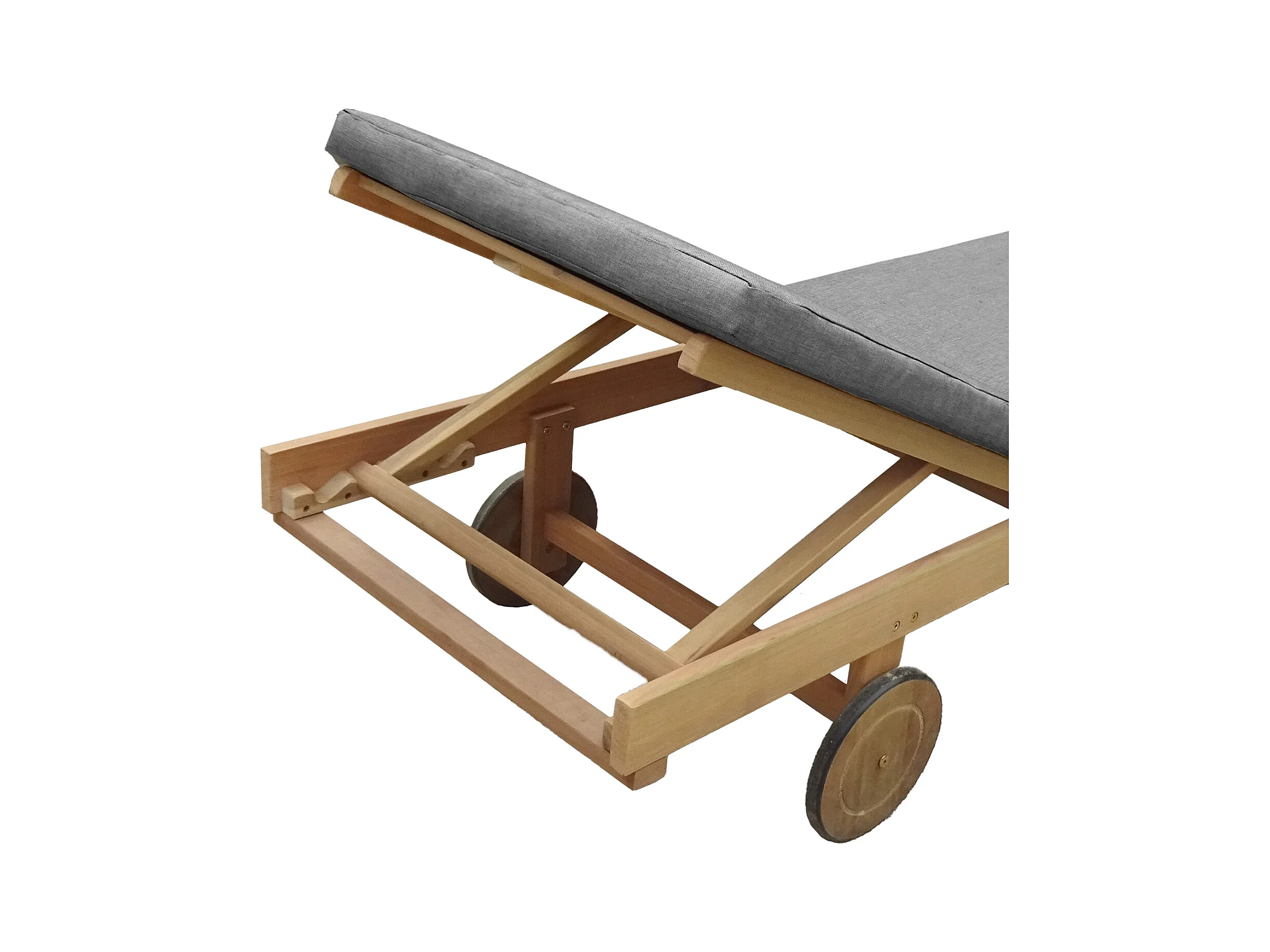 Opklapbare acacia ligstoel KANAWA - grijs kussen