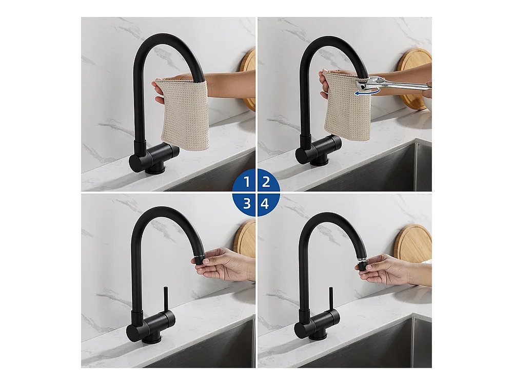 Keukenmengkraan met uittrekbare sproeikop Cecipa max - 360° draaibare roestvrijstalen kraan Zwarte sproeikraan met verwijderbare bubbler, EU-model