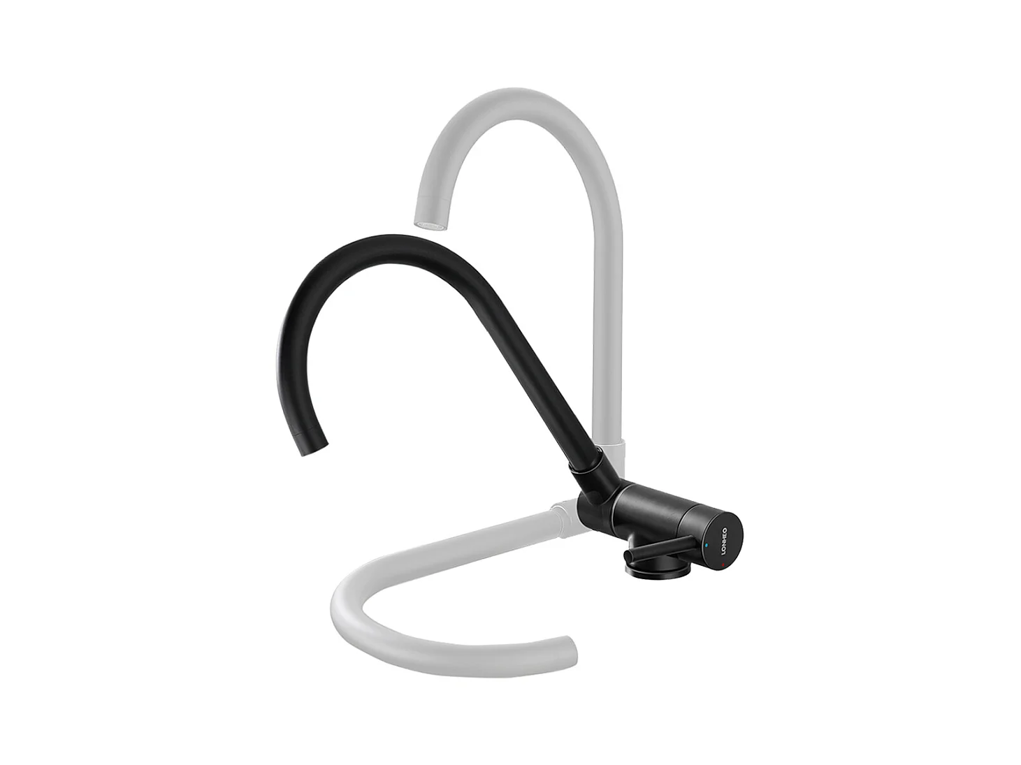 Lonheo Max Opklapbare Keukenmengkraan Zwart 360° Draaibaar, tegen Raam, 304 Roestvrij Staal met Afneembare Bradder, Warm Koud Water, EU Model