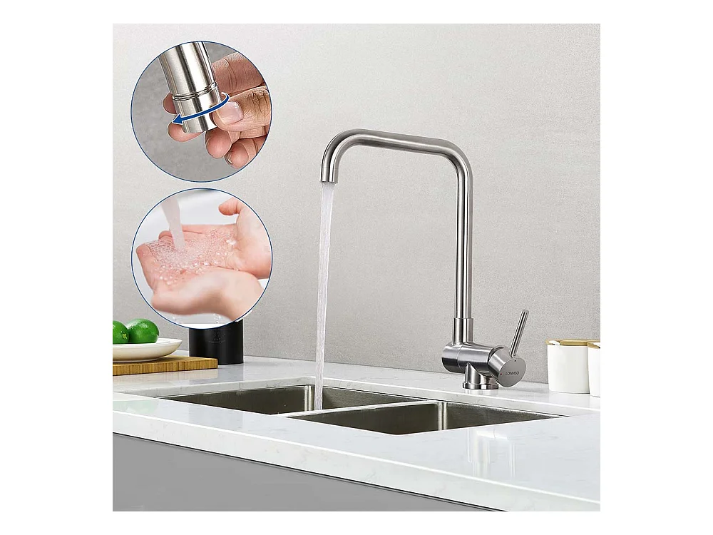 2 stuks Auralum max KeukenkraanKoudwater, 360° draaibaar, enkele hendel koudwater gootsteenkraan, roestvrij staal - geborsteld