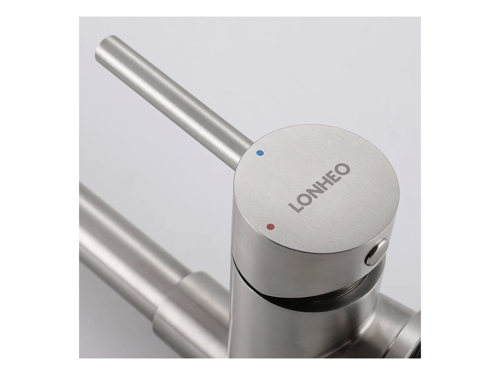 Keukenkraan met Koud Water Wastafelmengkraan met Flexibele Aansluiting, 360° Draaibaar, Keukenmengkraan met Uitloop Hoogte 350 mm, Geborsteld
