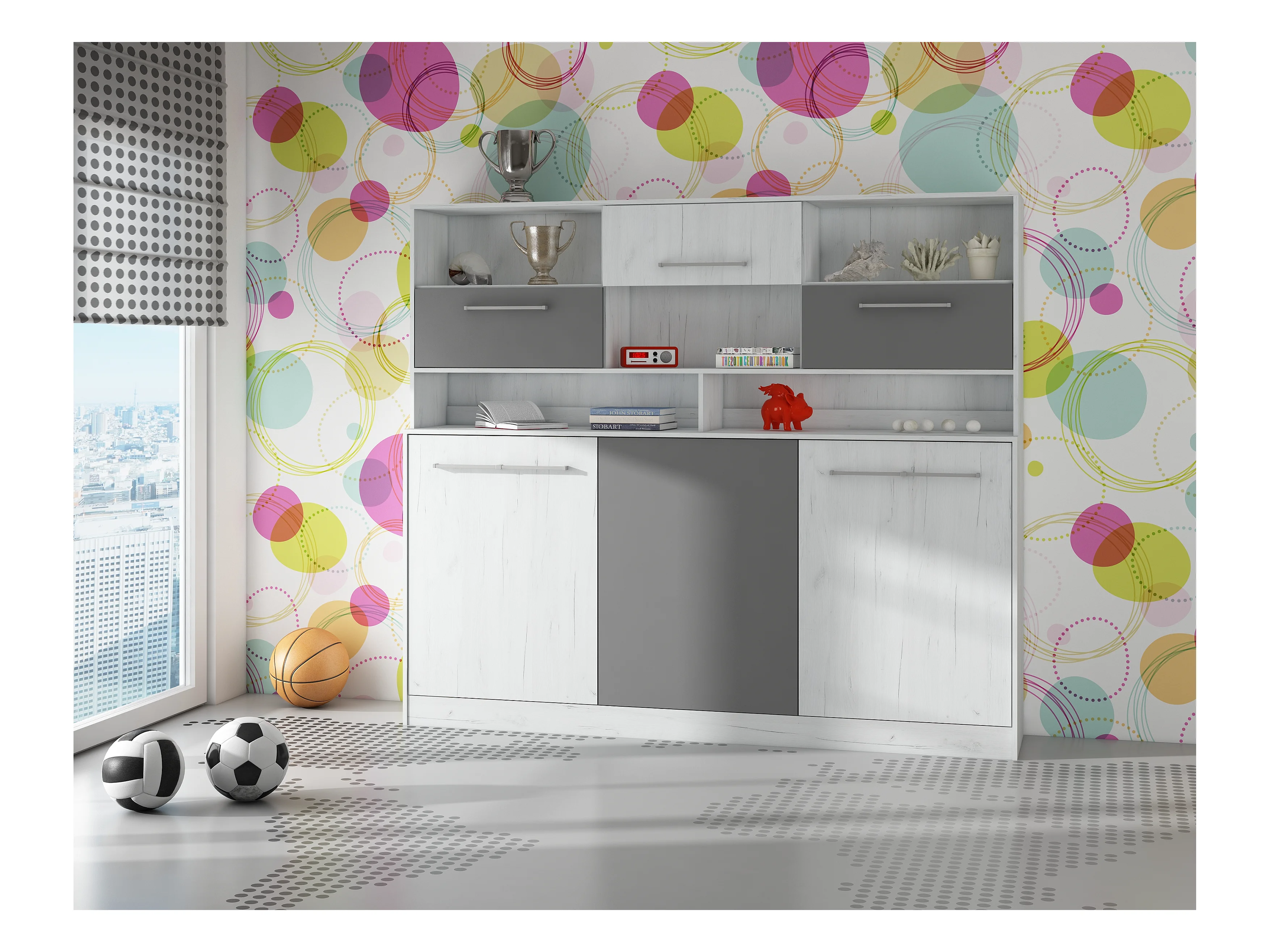 Opklapbed horizontaal ROGER 90x200 cm met plank, artisan eiken wit / grafiet