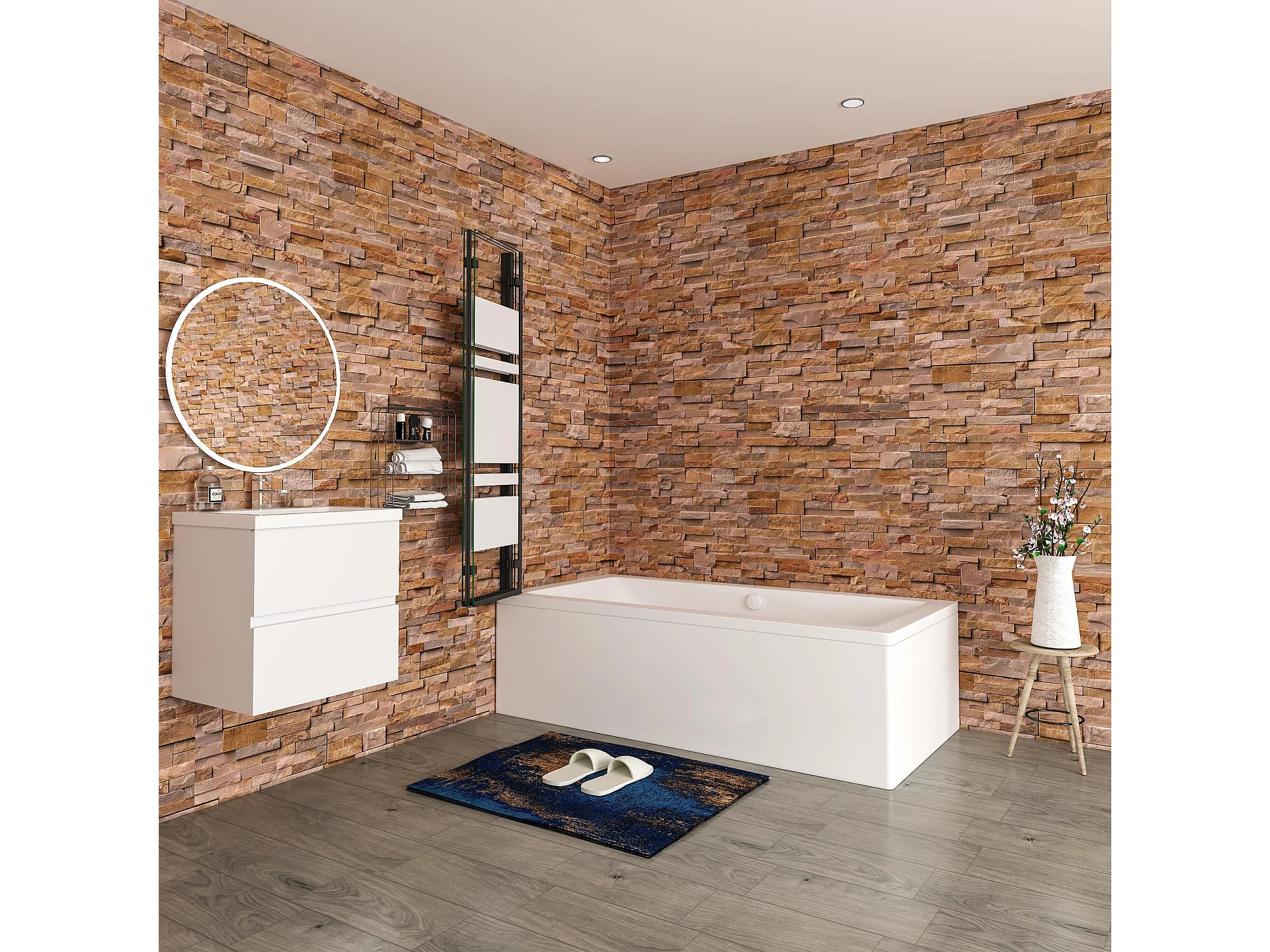 Opvouwbaar badwand 3 panelen vouwbaar 130x140cm,6 mm nano helder veiligheidsglas met horizontale strepen - mat zwart profiel
