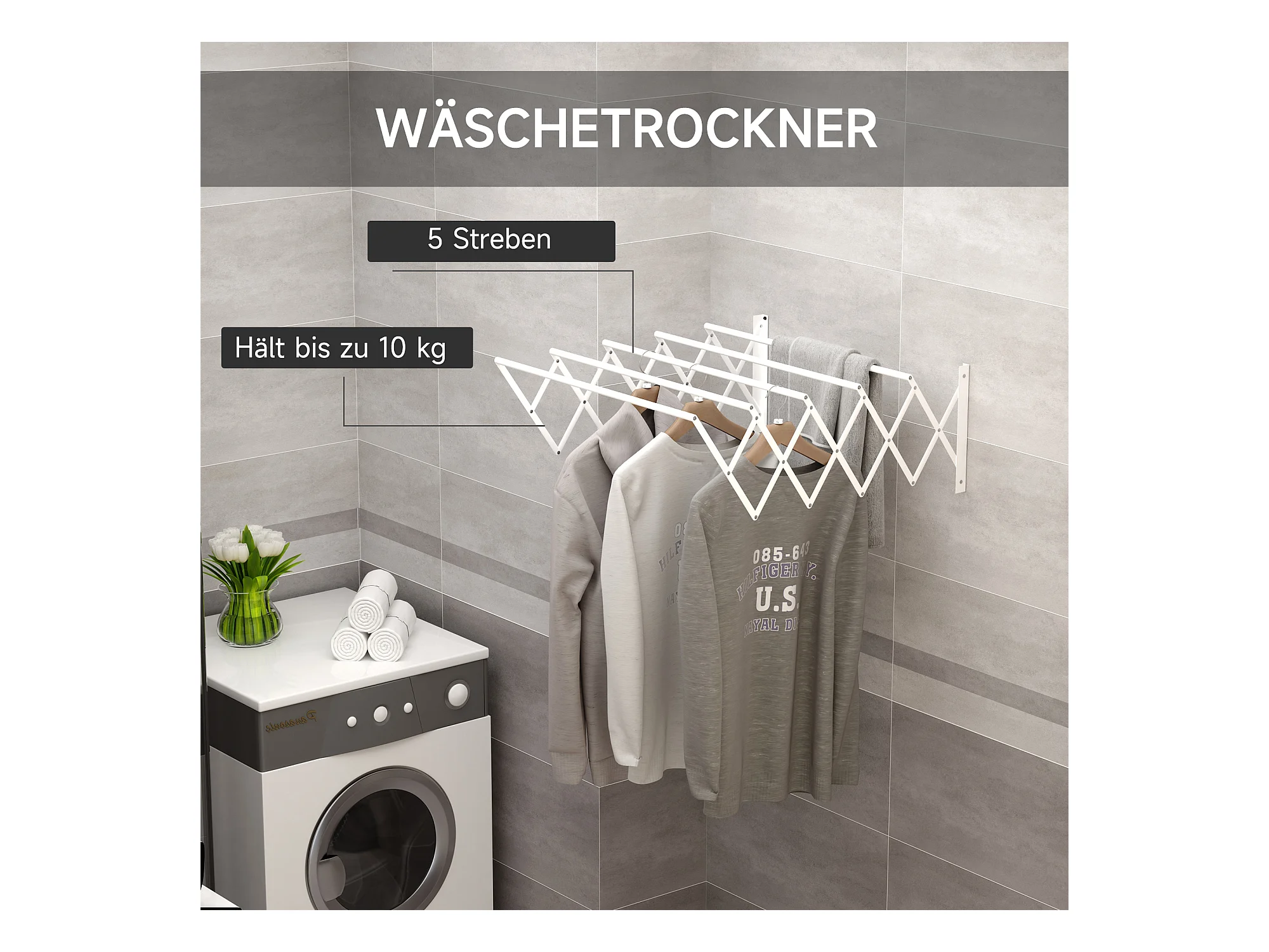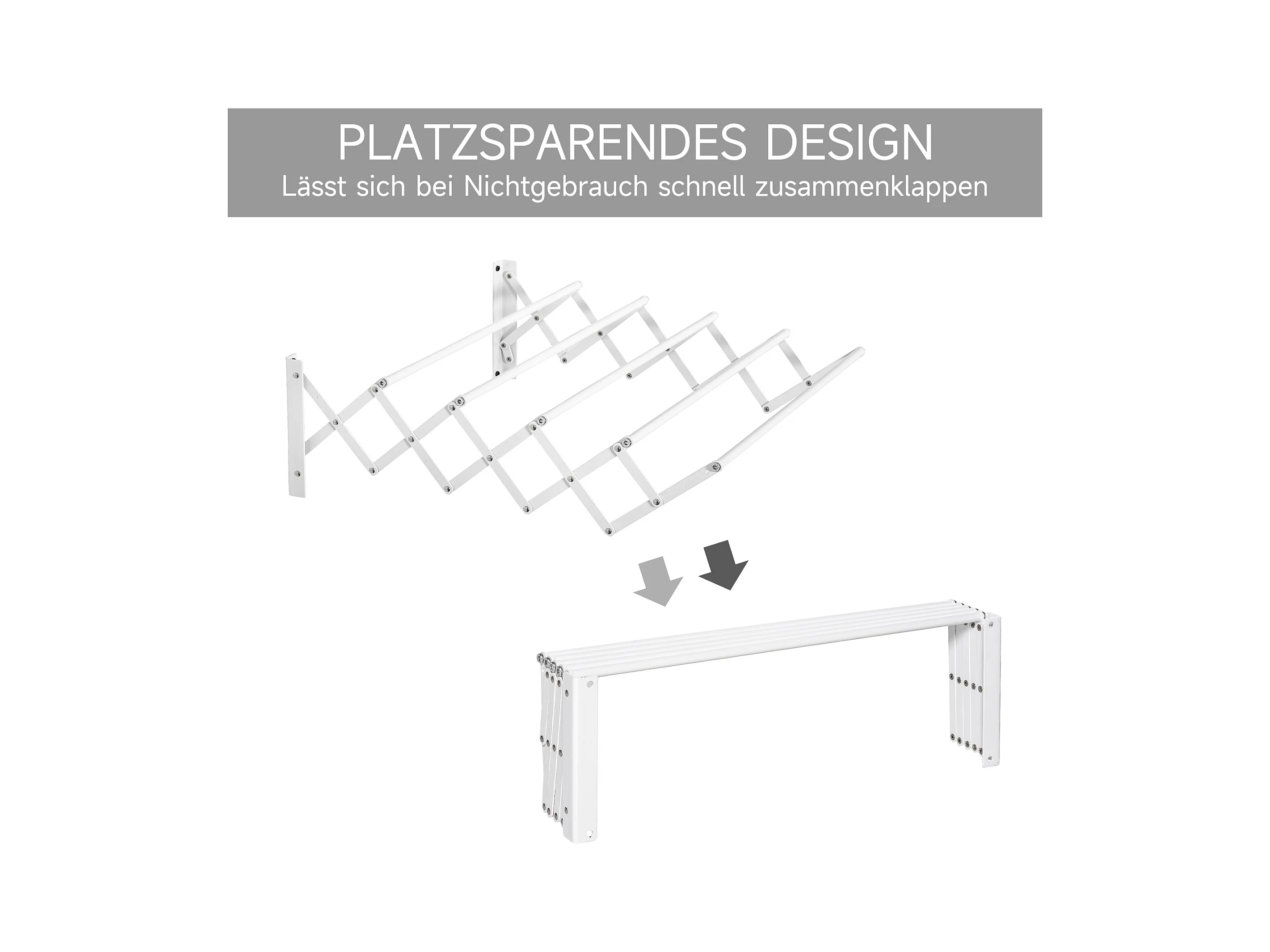Opvouwbaar droogrek voor aan de muur, ruimtebesparend, wit metaal, robuust en resistent (63,5x60x20cm)