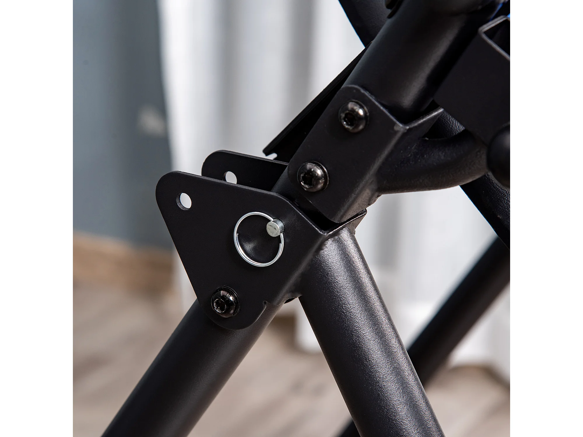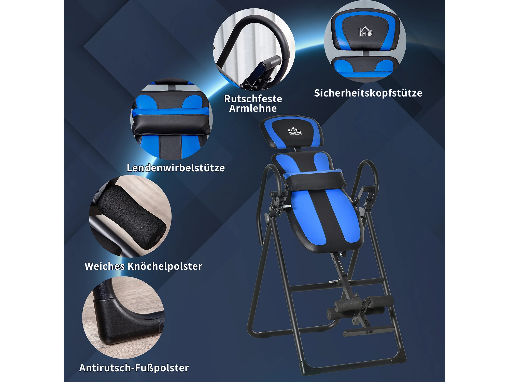 Opvouwbare inversiebank, zwaartekrachttrainer met wielen en verstelbare rugleuning, metaal en ABS, zwart en blauw (132x71x145cm)