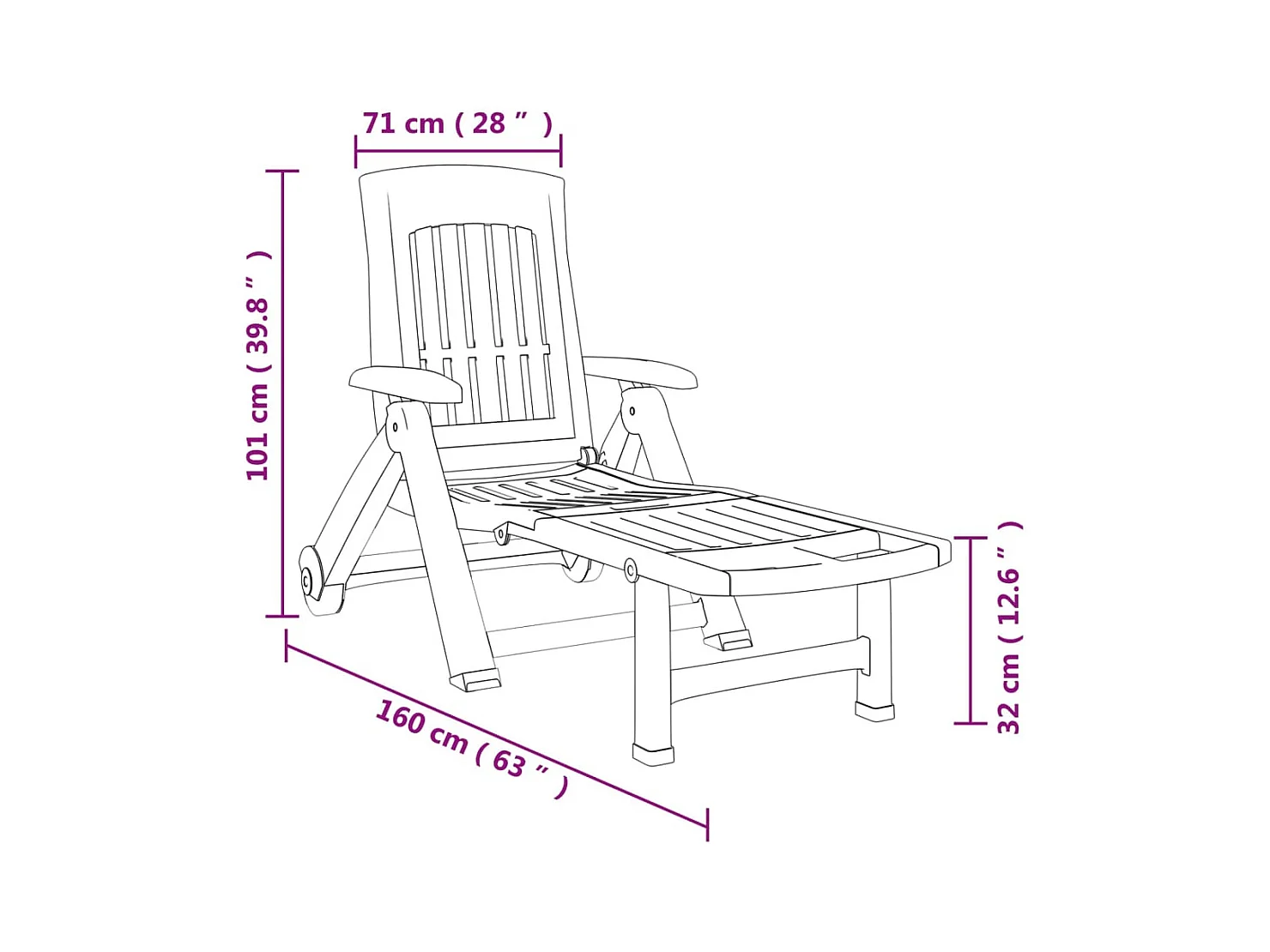 Buitenligstoel met voetenbank en kussen Massief acacia