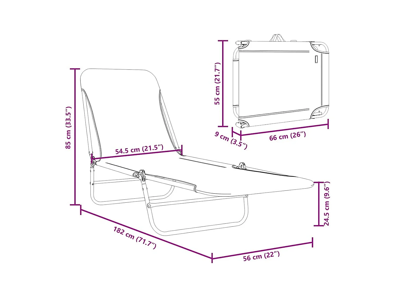 Opvouwbare loungestoel met hoofdsteun, textileengroen