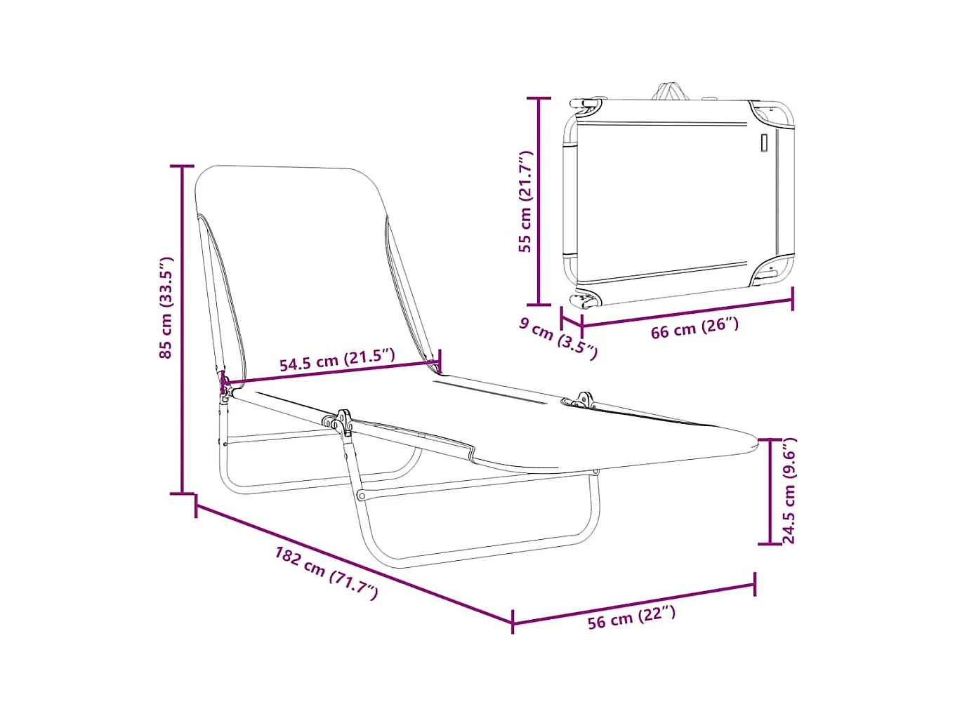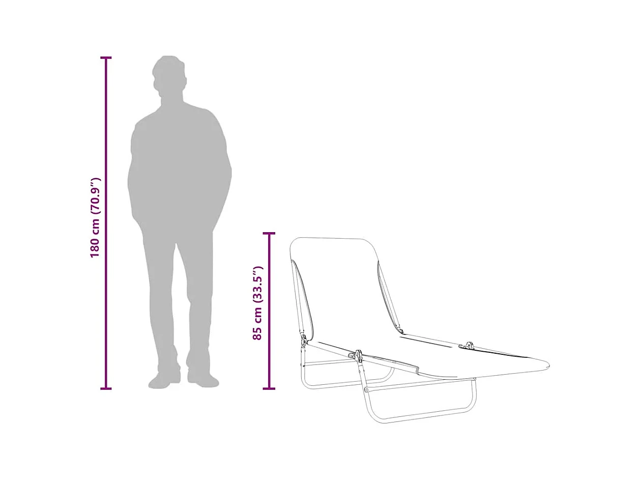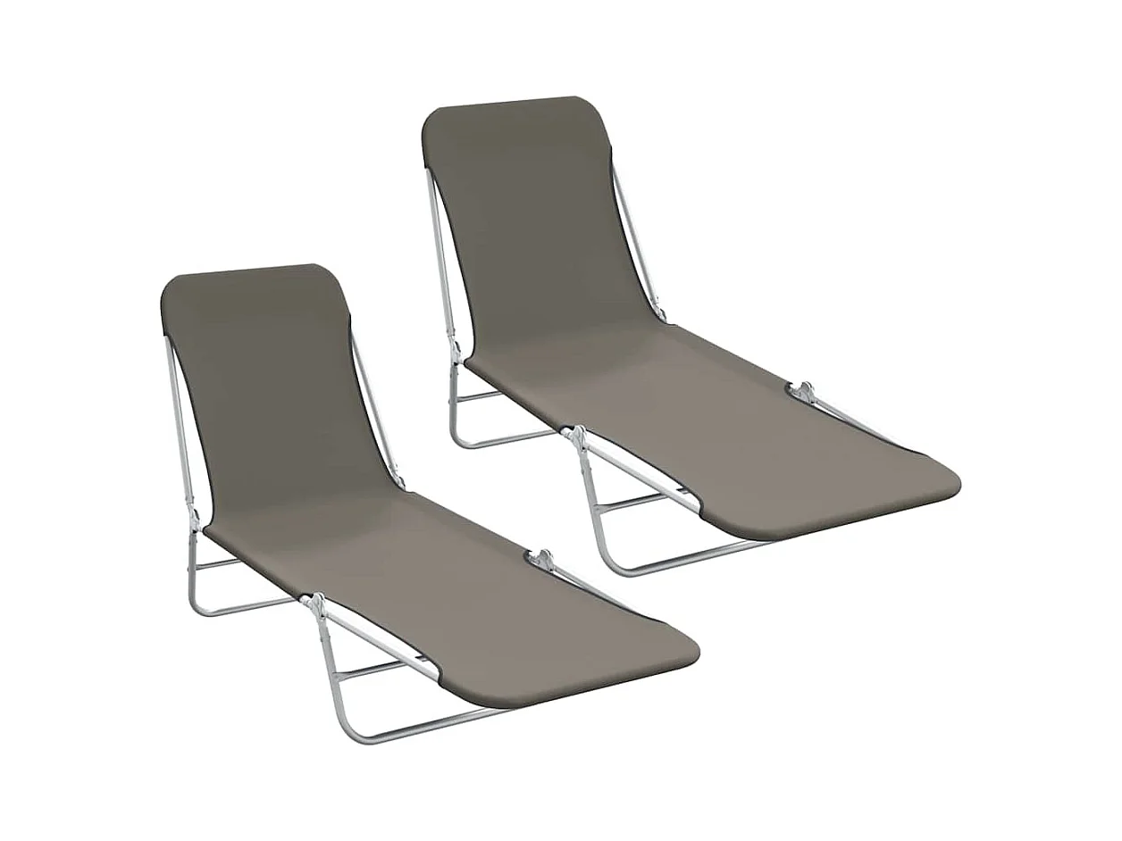 Opvouwbare ligstoelen set van 2, grijs textileen en staal