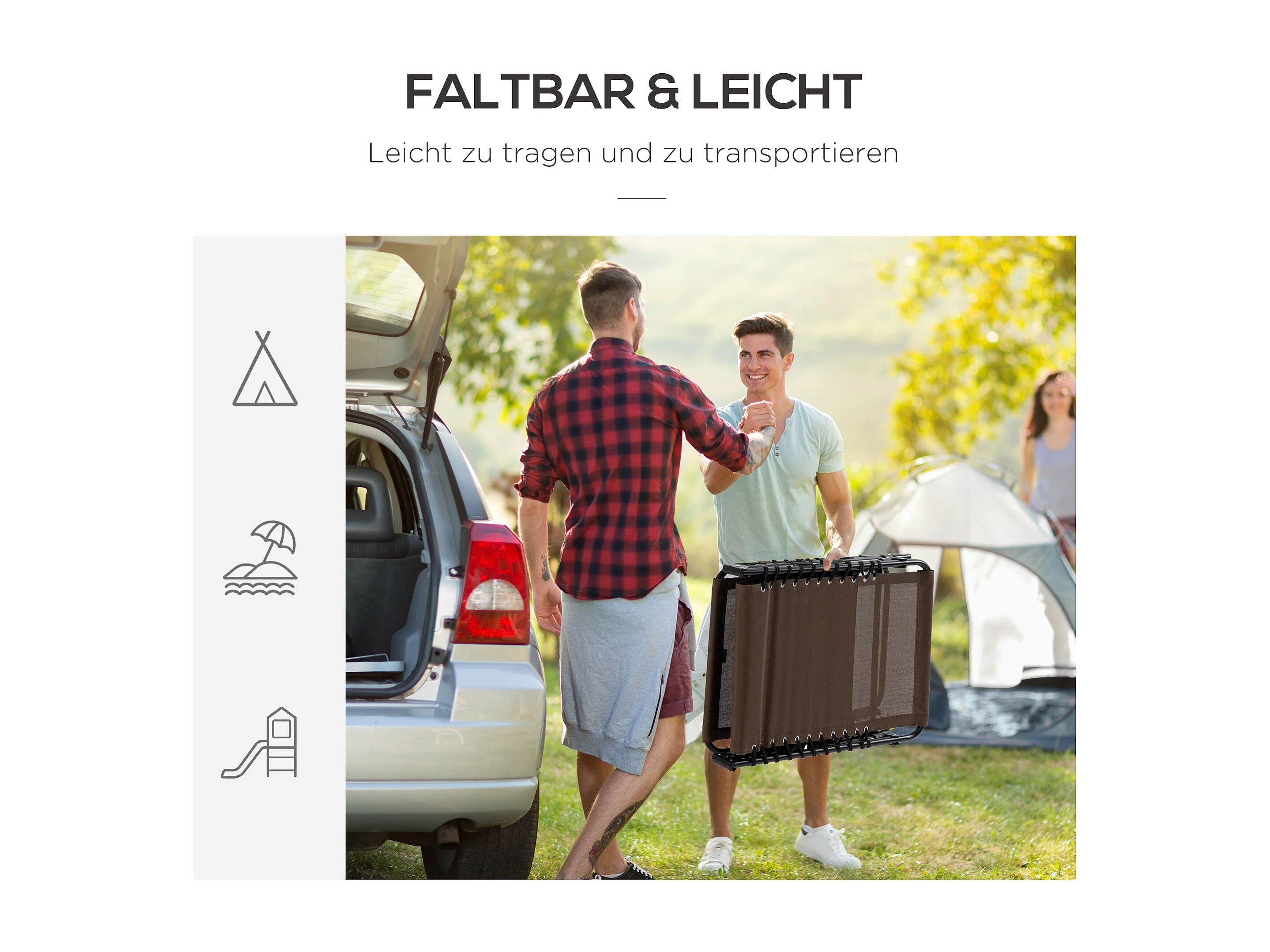 Opvouwbare tuinligstoel, staal, bruin, comfortabel design (182x56x28 cm)