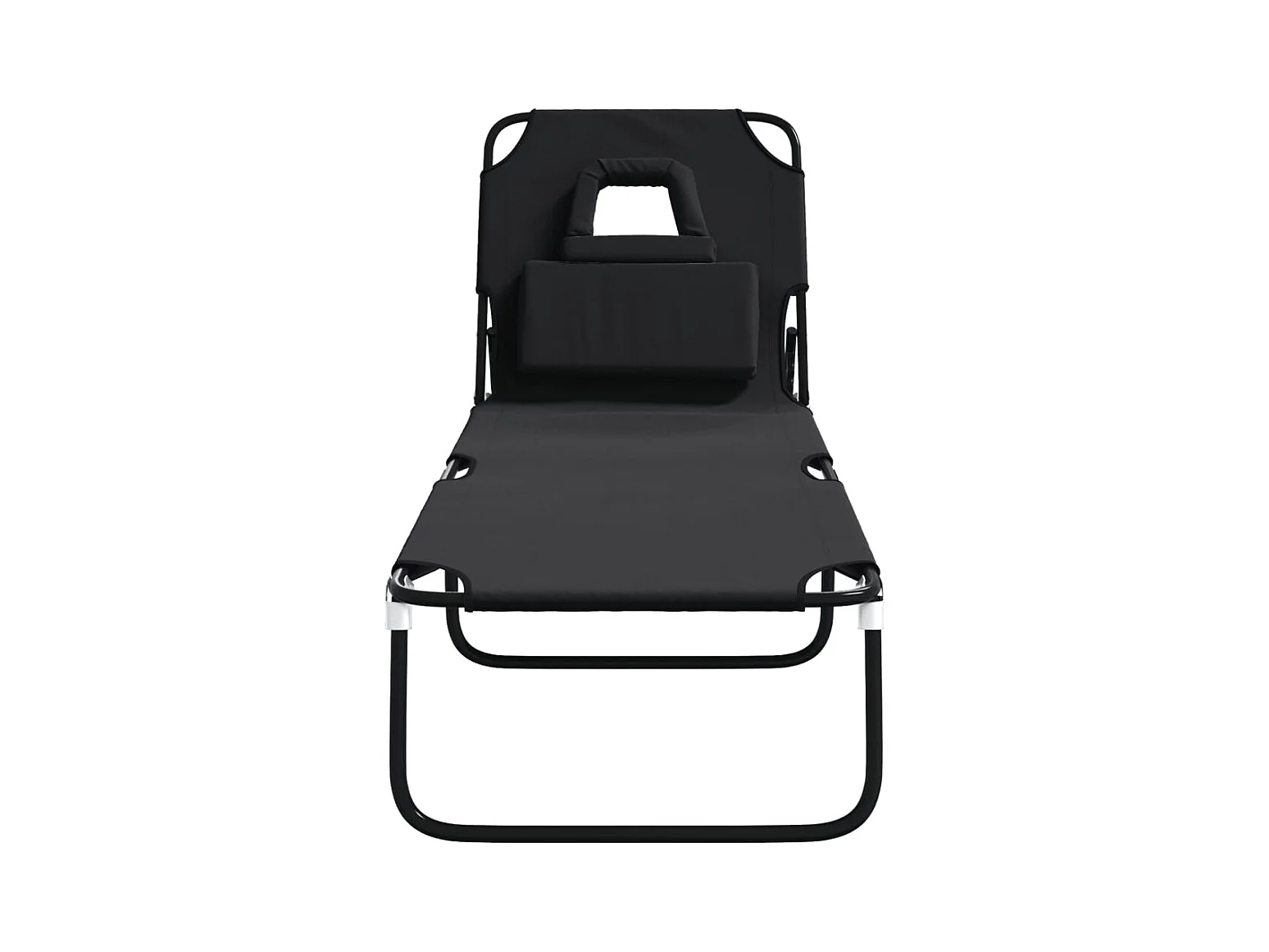 Chaise longue met hoofdkussen Poedergecoat staal Zwart