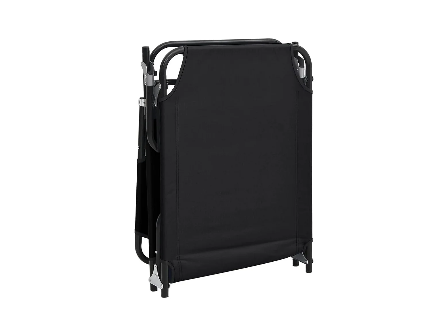 Opvouwbare ligstoel met stalen en zwarte stoffen kap