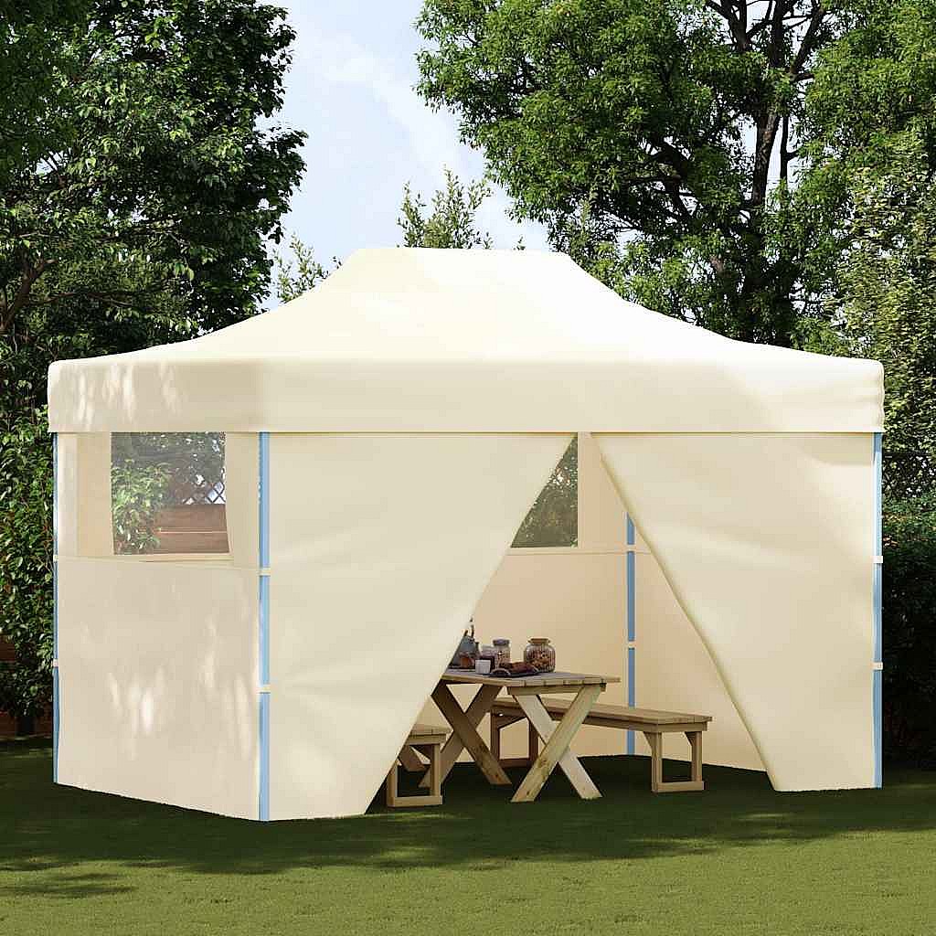 Opvouwbare ontvangsttent met 4 wanden 3x4 m Staal Crème