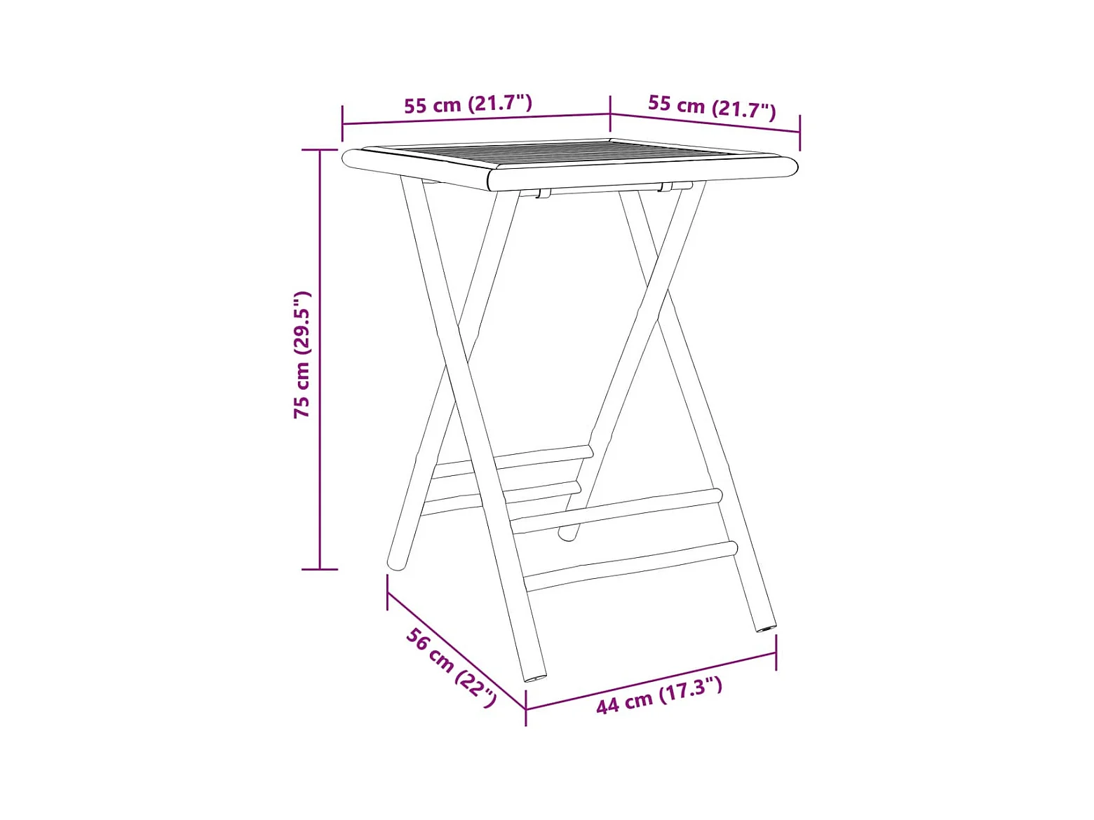 Opvouwbare tuintafel 55x55x75 cm bamboe