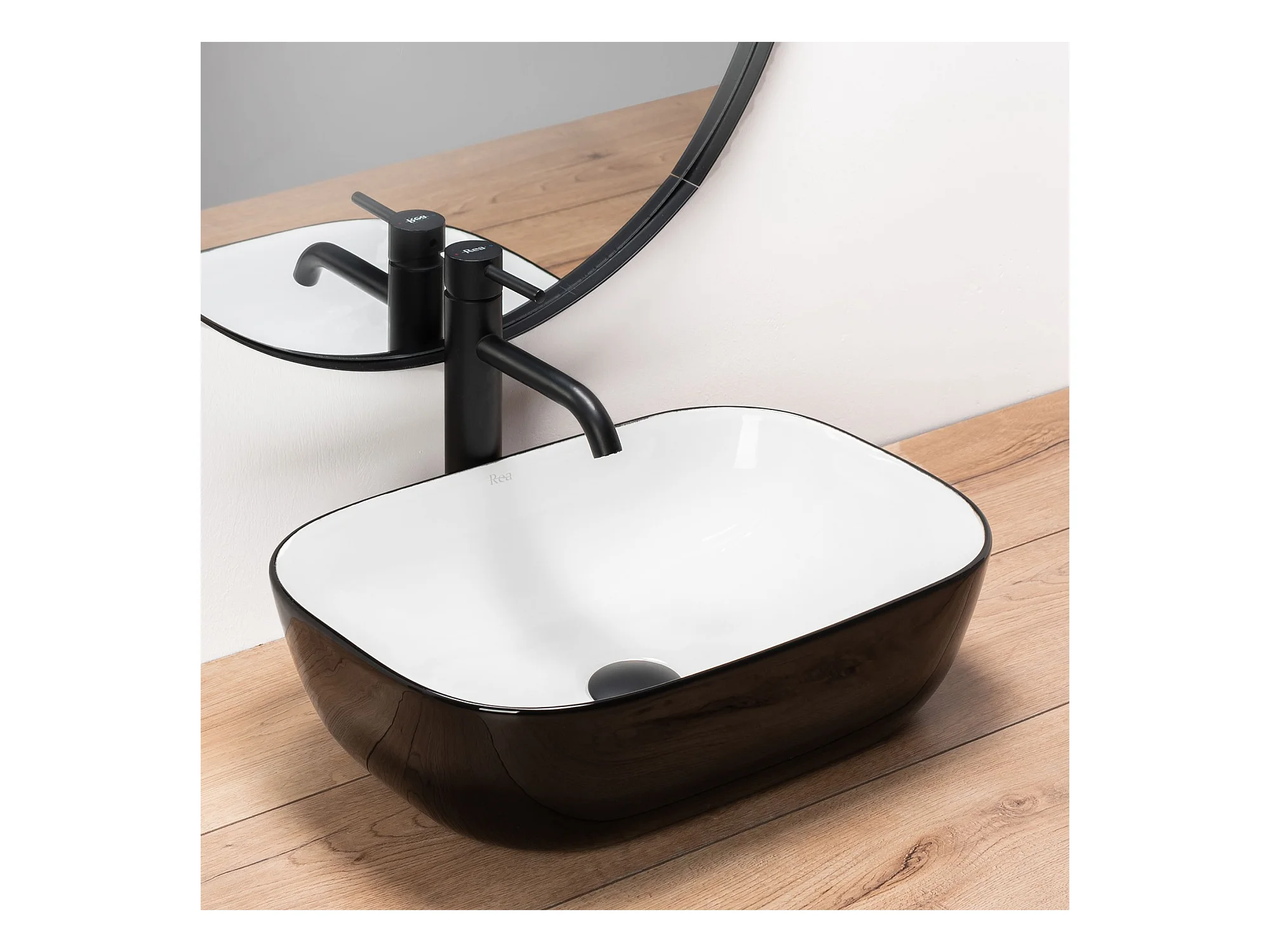 Zwarte rechthoekige keramische wastafel voor de badkamer