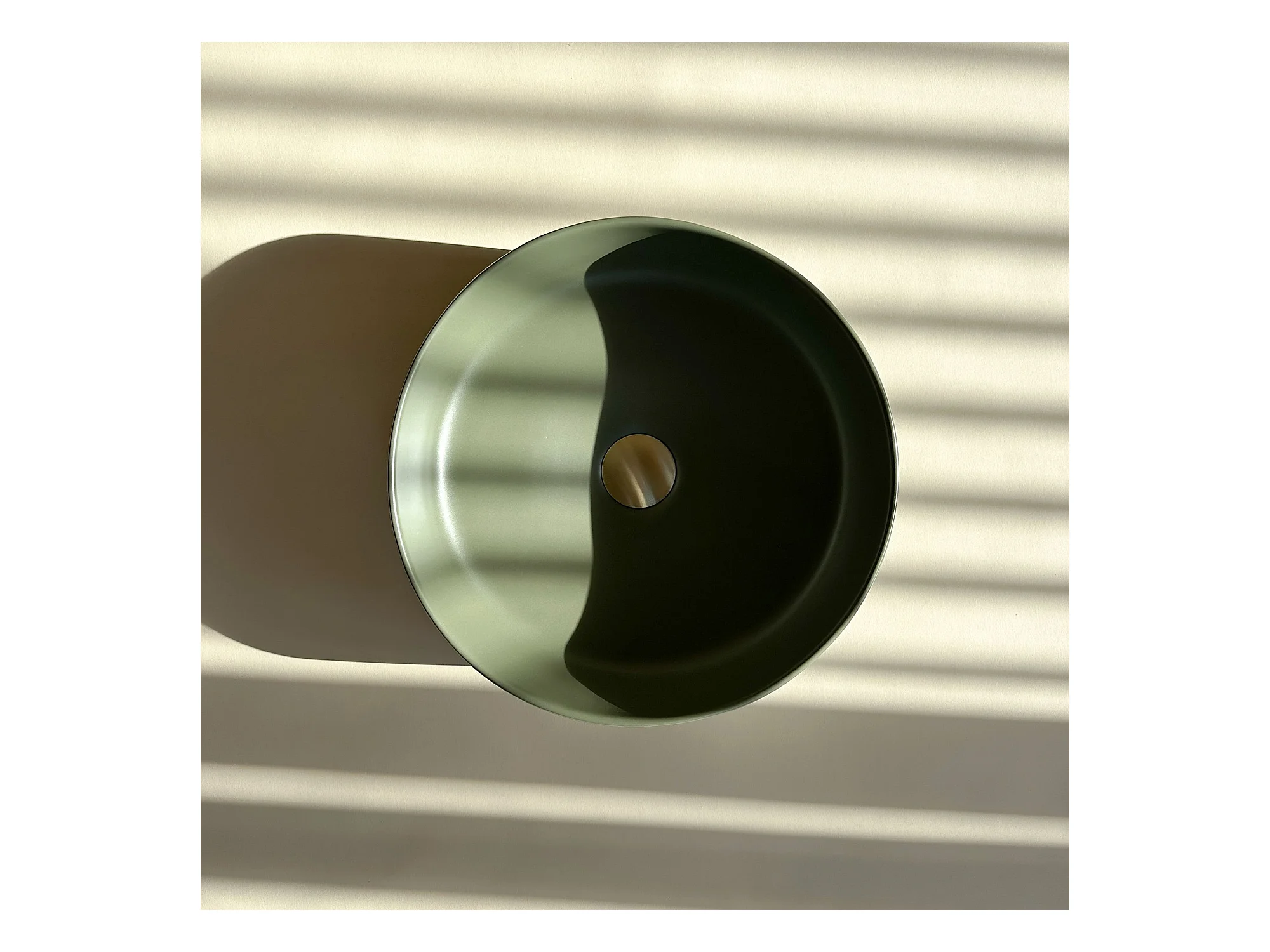 Ronde keramische opzetwastafel - Mat groen - 36 cm - LENISO II