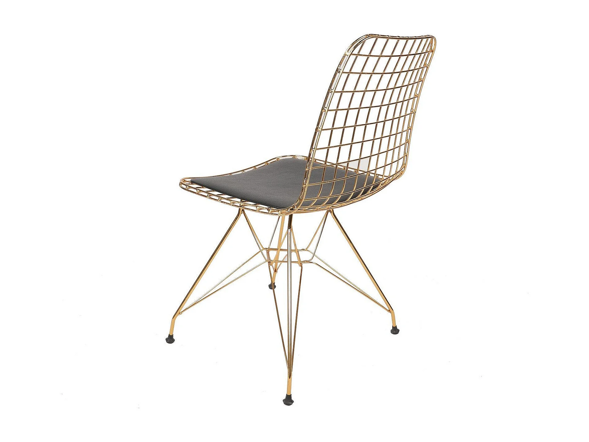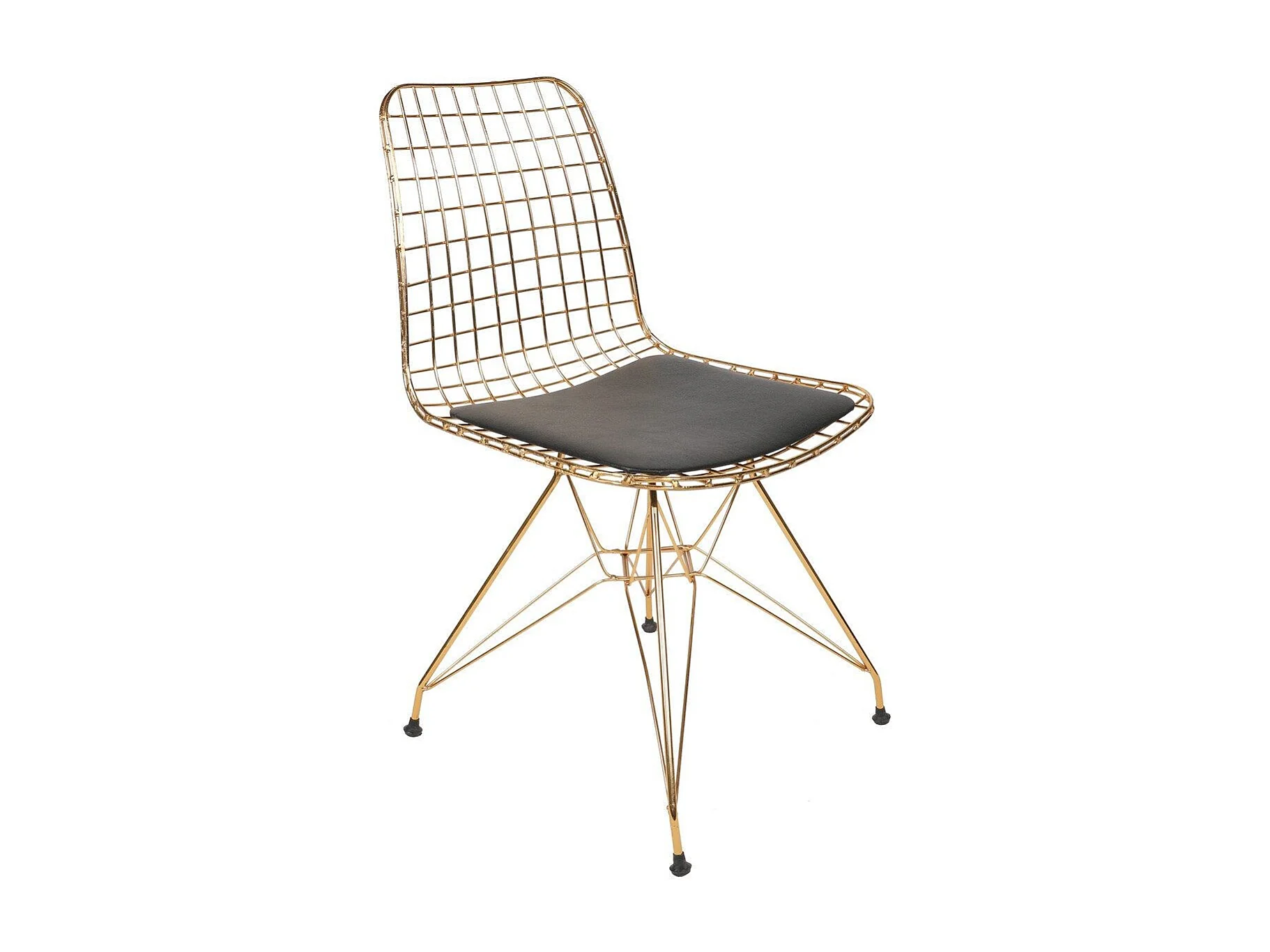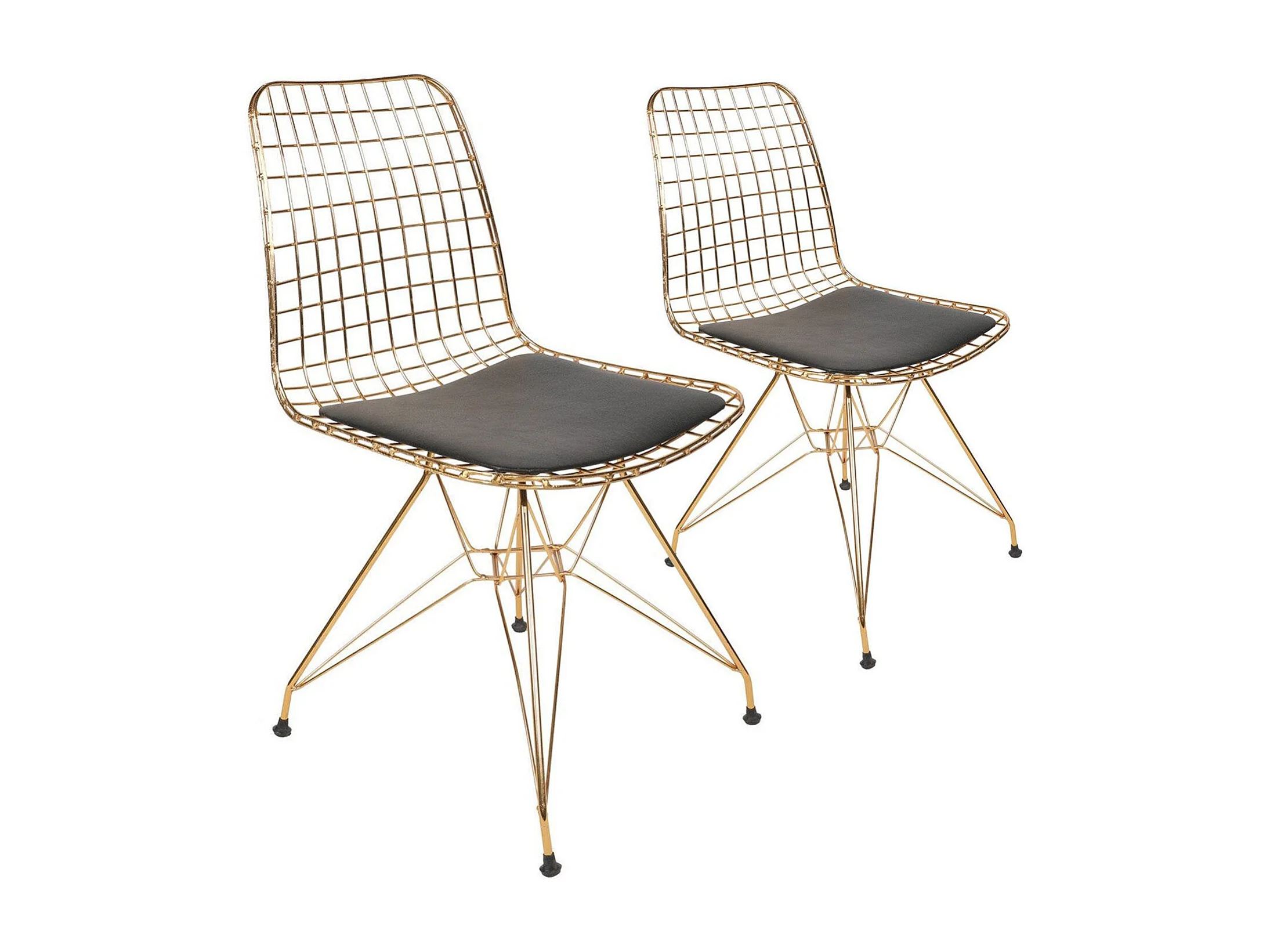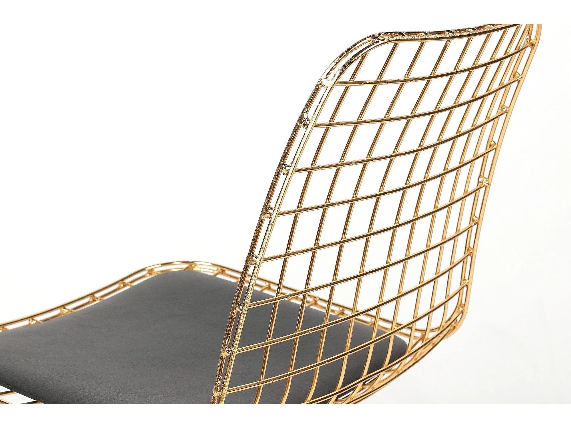 Originele goud metalen stoel en zwart lederen zitting Kliko - Set van 2