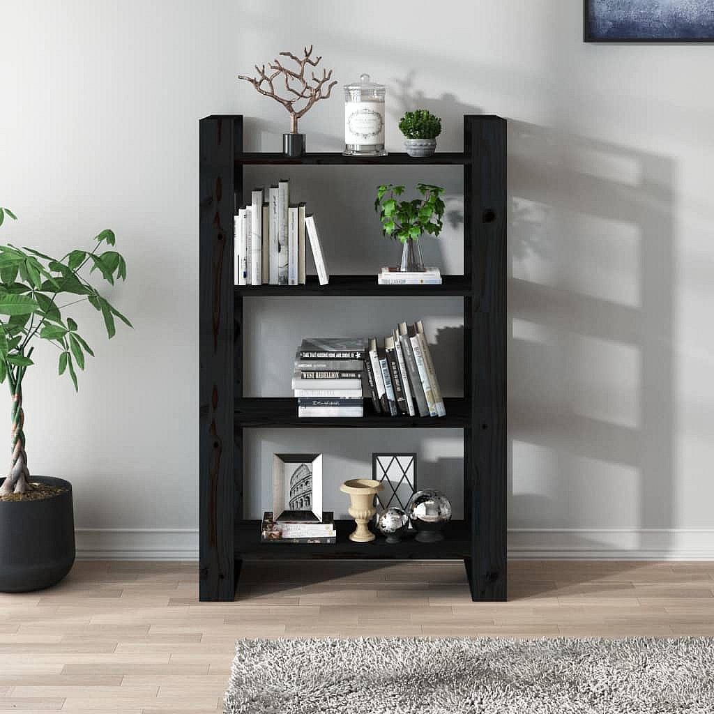 Alisha Boekenkast/kamerscherm 80x35x103 cm massief grenenhout zwart