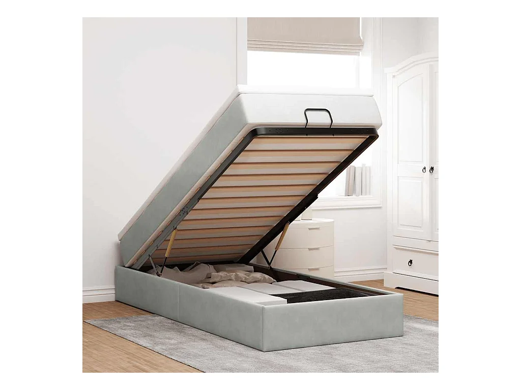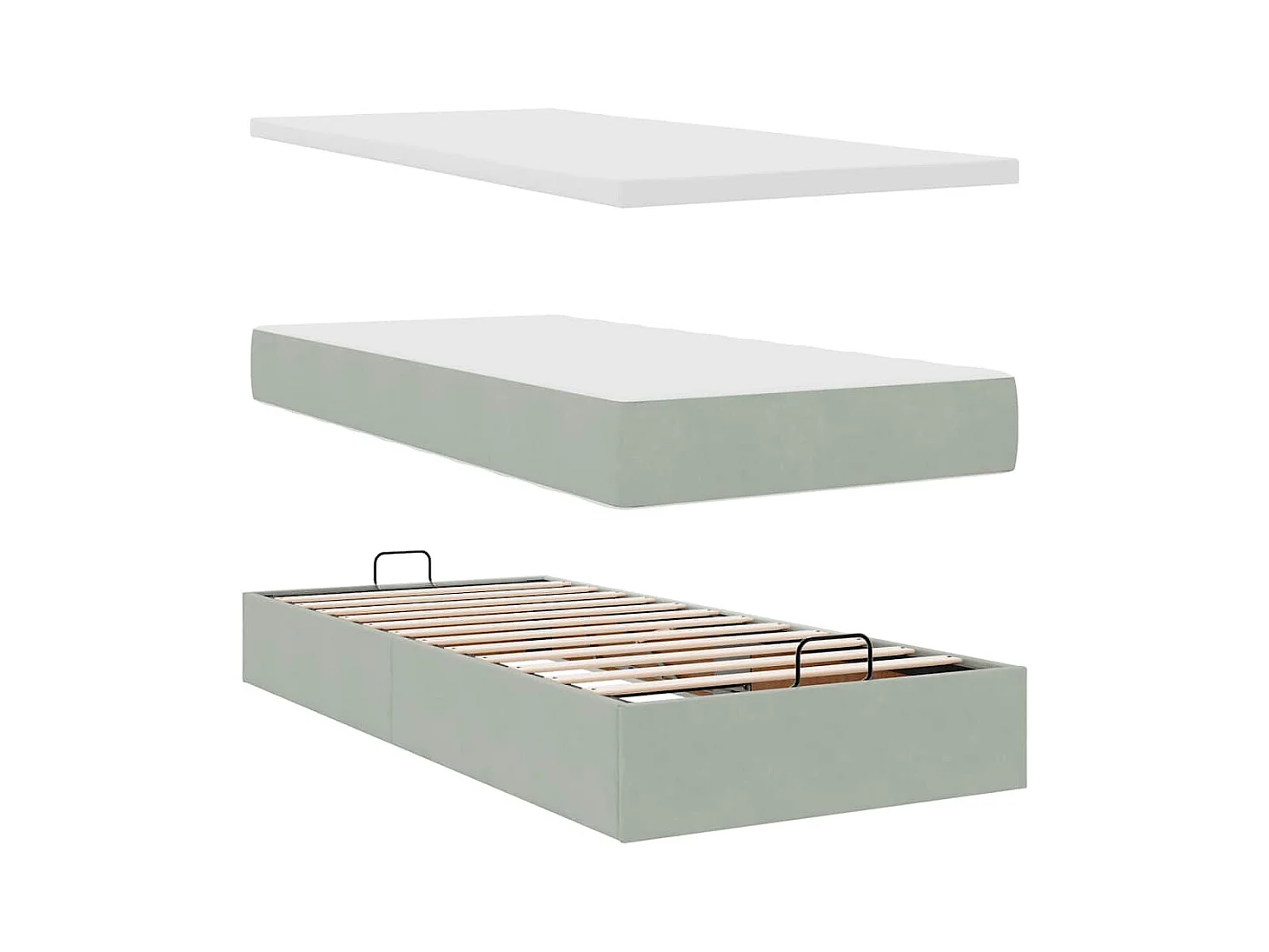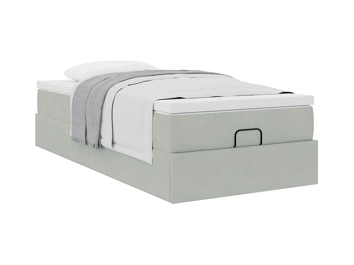 Ottoman bed met matrassen 100x200cm fluweel lichtgrijs
