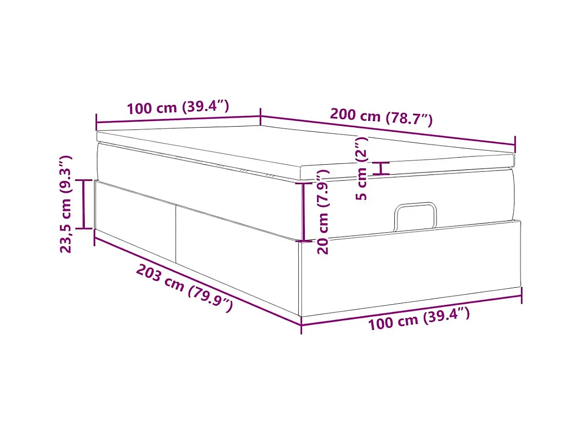 Ottoman bed met matras 100x200cm stof donkergrijs