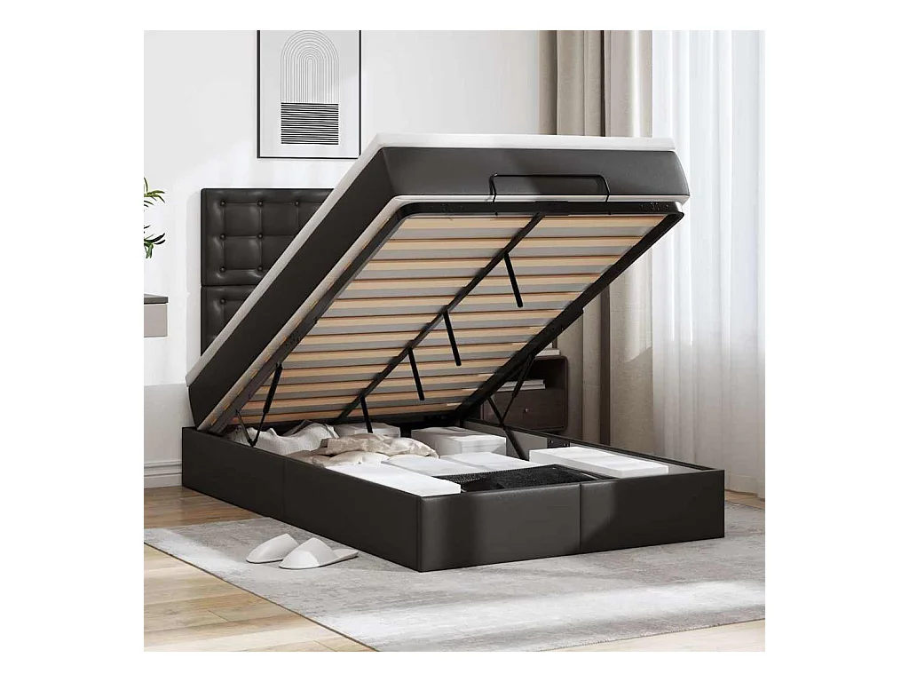 Ottoman bed met matras 120x200cm kunstleer zwart