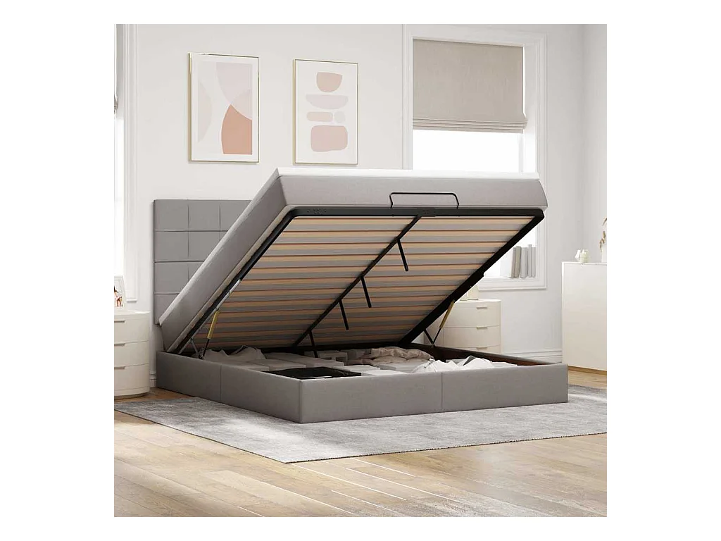 Gestoffeerd bed - 180x200 cm - in grijsbeige geweven stof - ASMELIO