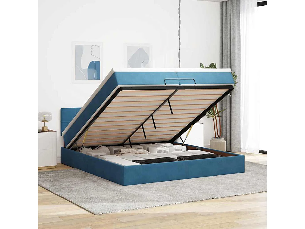 Mona SLIM III in VELUTTO stof, Comfortabel gestoffeerd bed - Ergonomische rugsteun 200x200 cm, Blauw