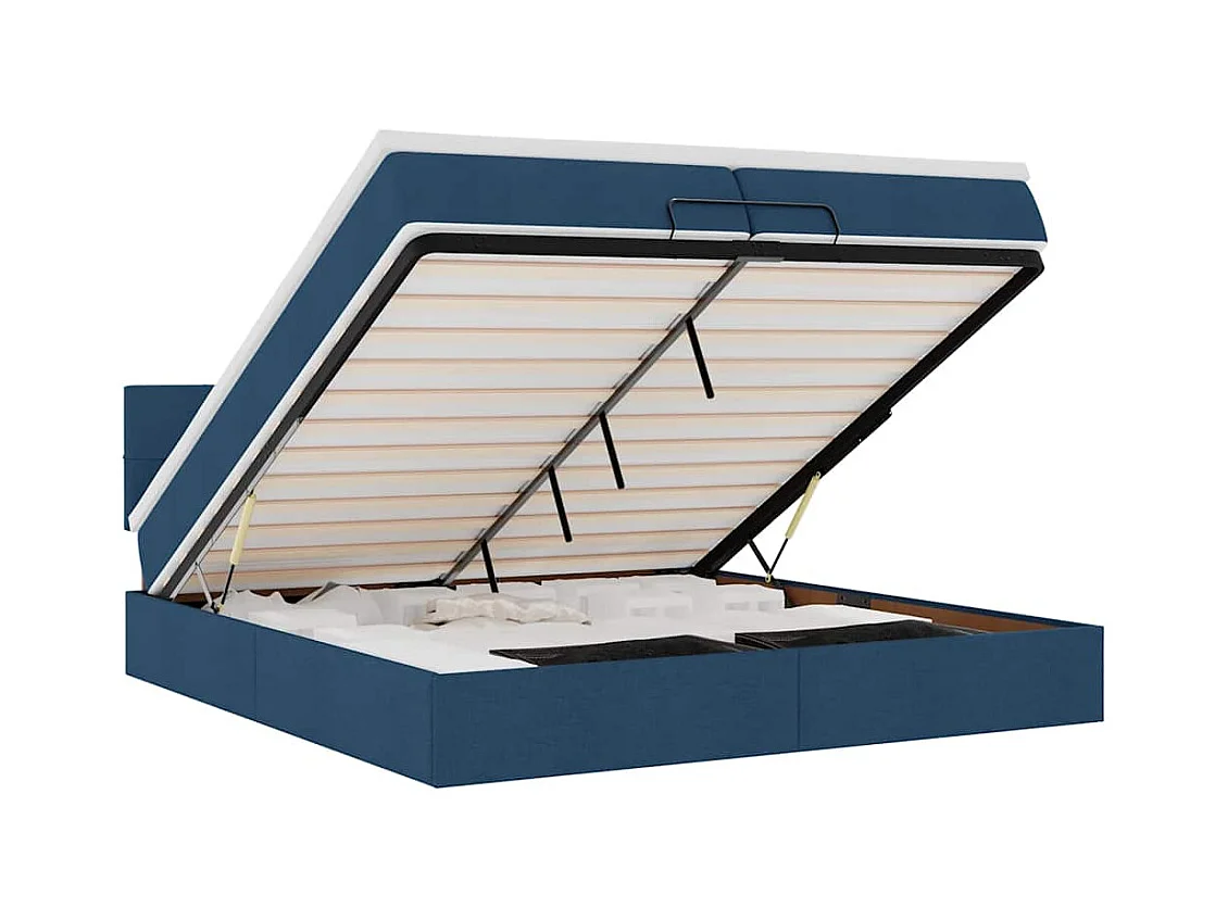 Ottoman bed met matrassen en LED's 200x200cm stof blauw