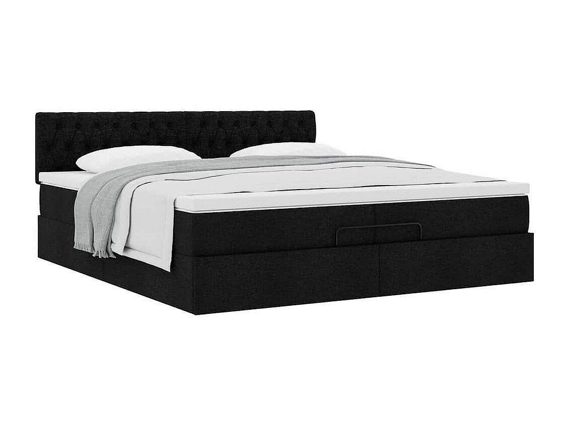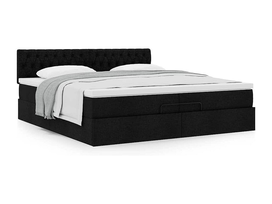 Ottoman bed met matrassen en LED's 200x200cm stof zwart