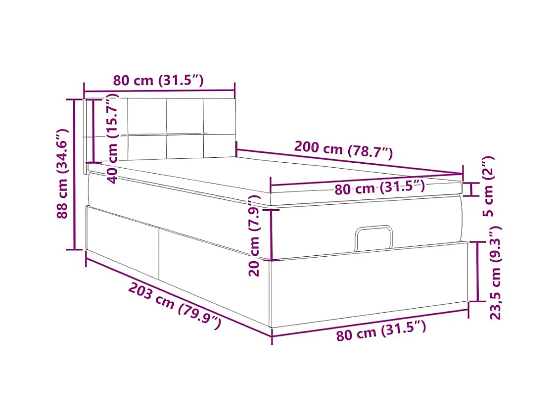 Ottoman bed met matras 80x200cm kunstleer zwart