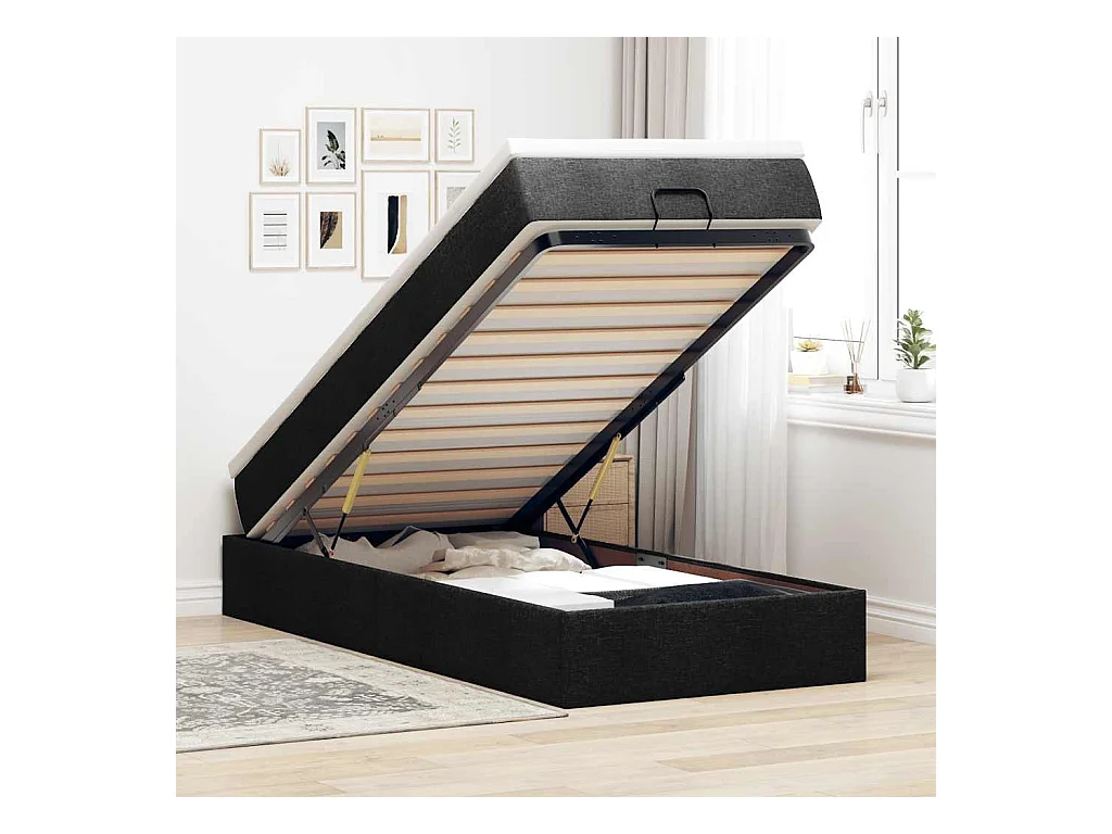 Bed poef met matras en LED's 80x200 cm stof zwart