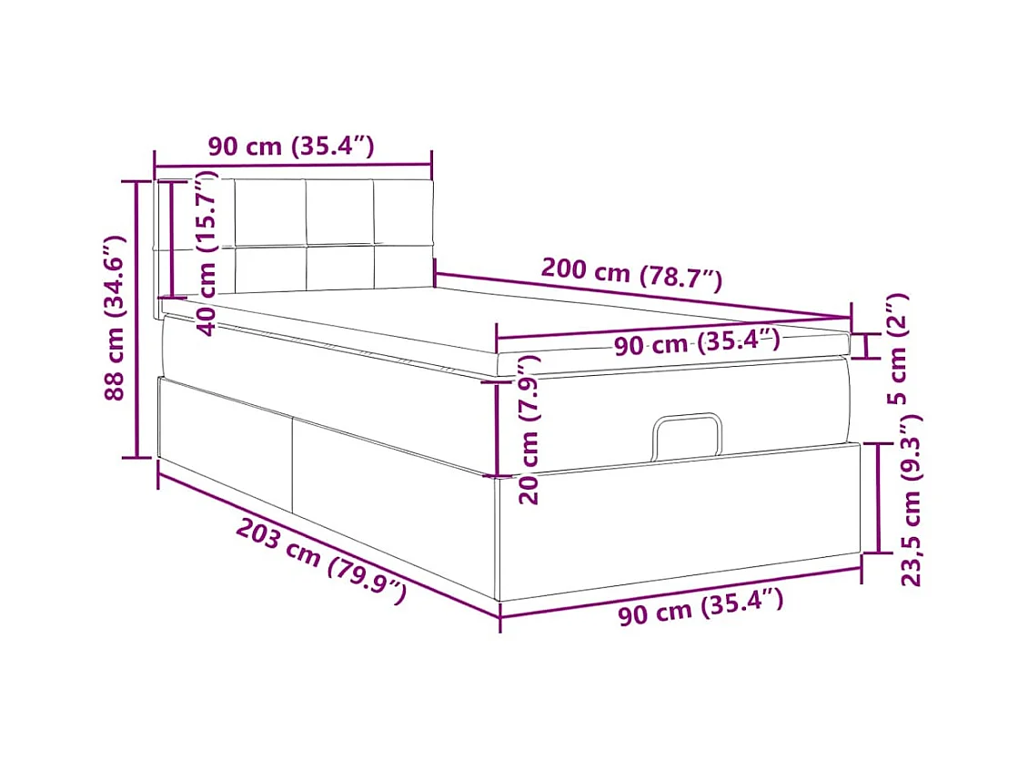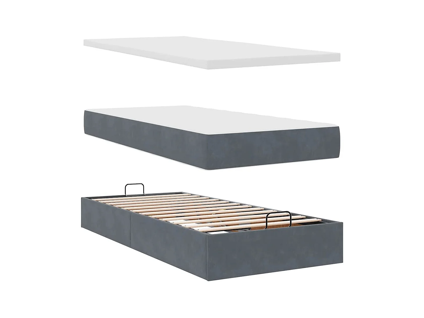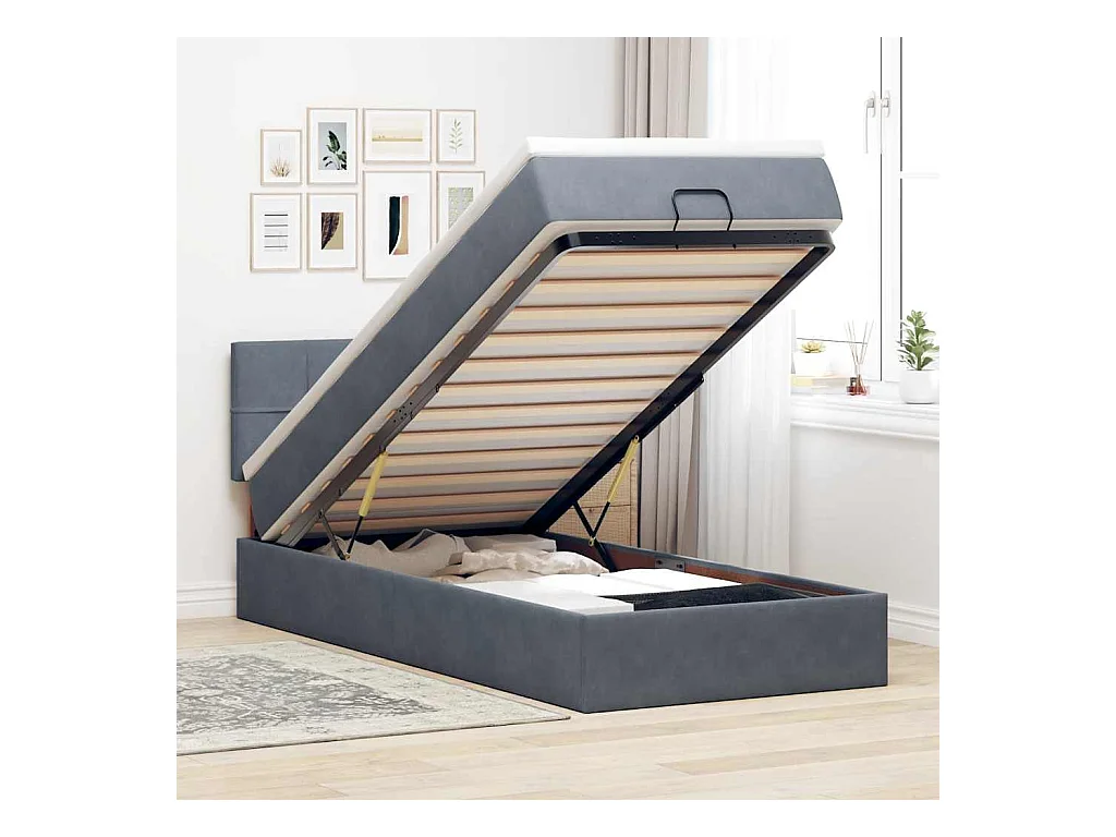 Ottoman bed met matras 90x200cm fluweel donkergrijs