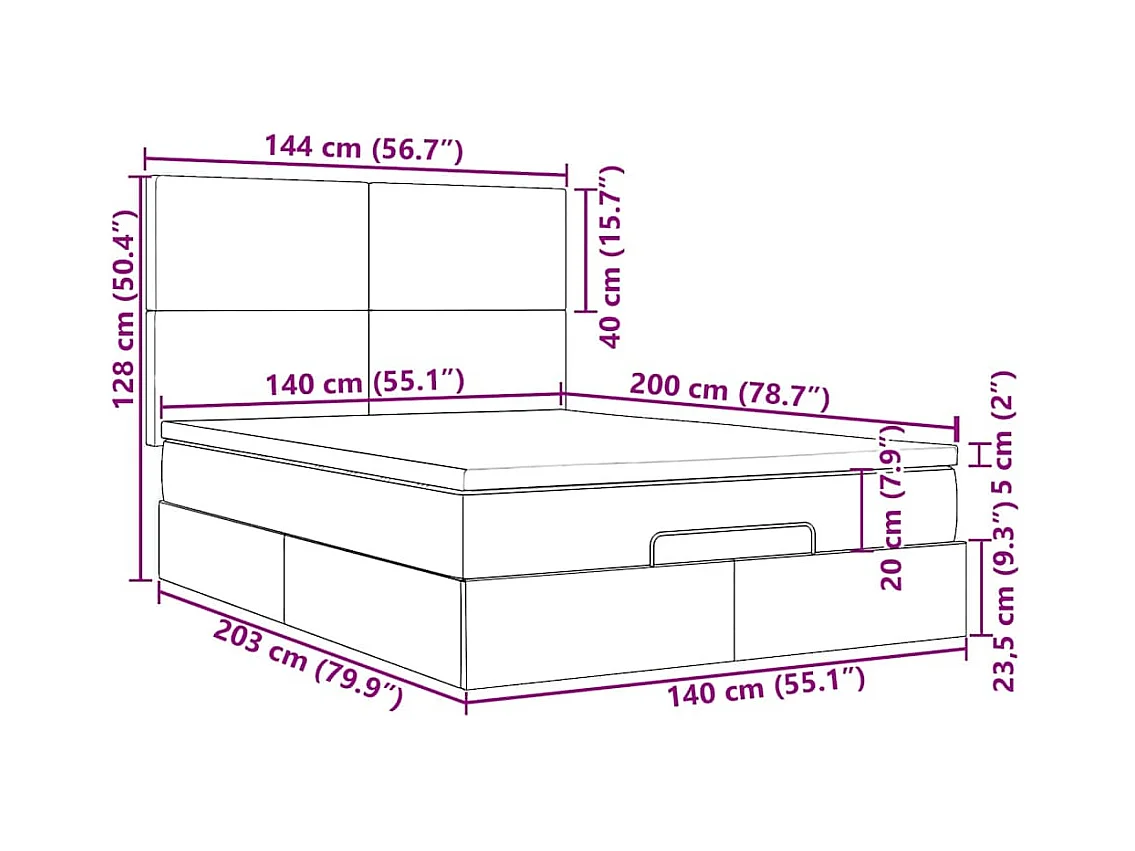 Ottoman bed met matrassen 140x200cm fluweel donkergrijs