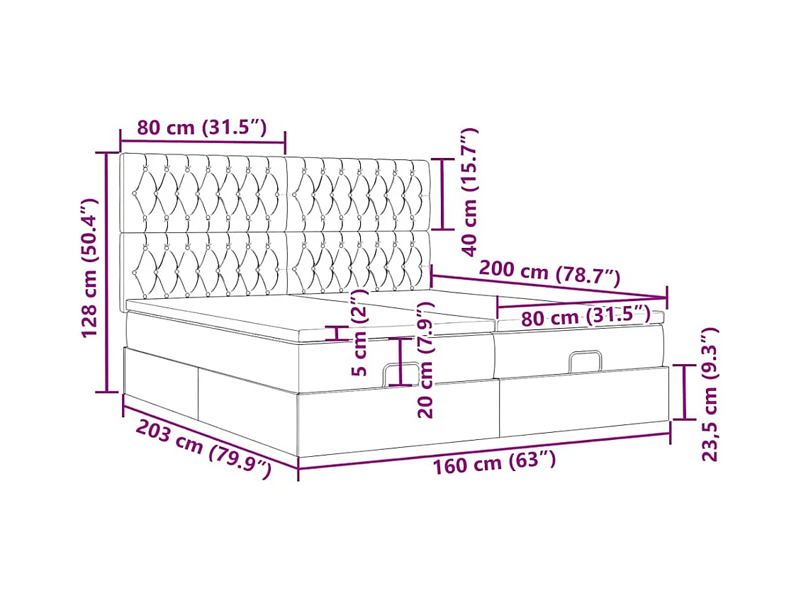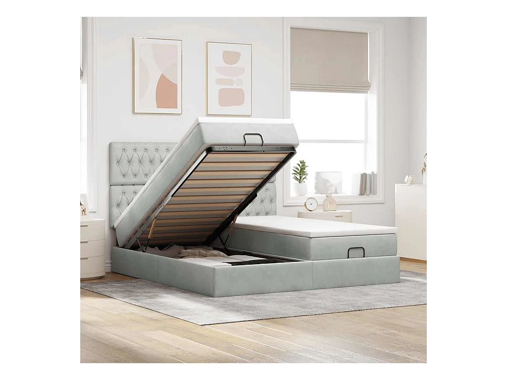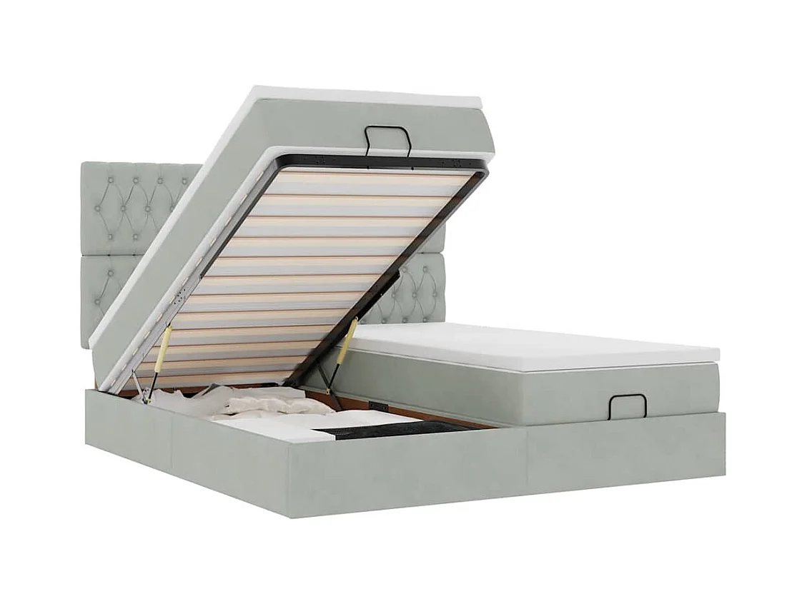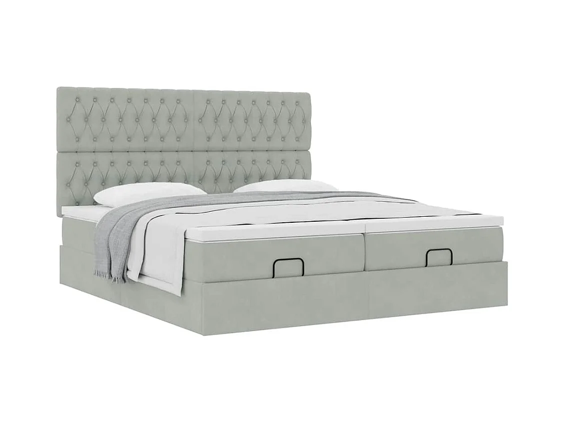 Ottoman bed met matrassen 160x200cm fluweel lichtgrijs