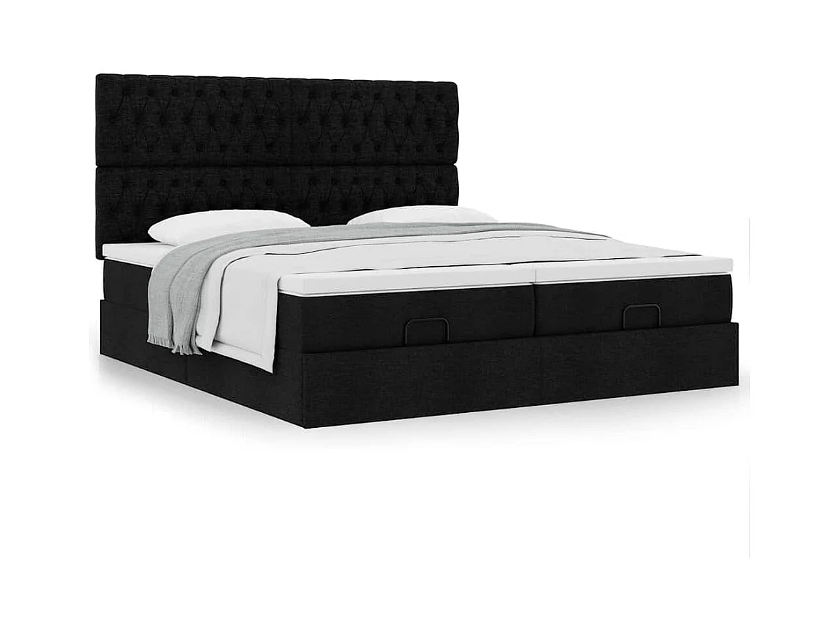 Ottoman bed met matrassen en LED's 180x200cm stof zwart