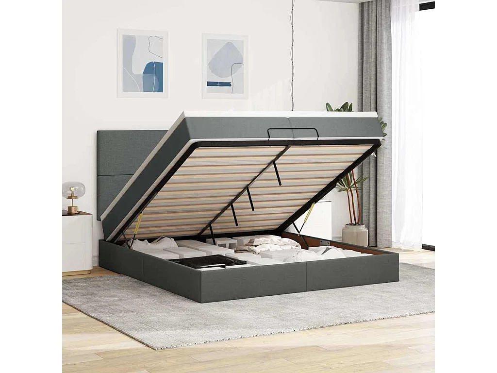Ottoman bed met matrassen 200x200cm stof donkergrijs