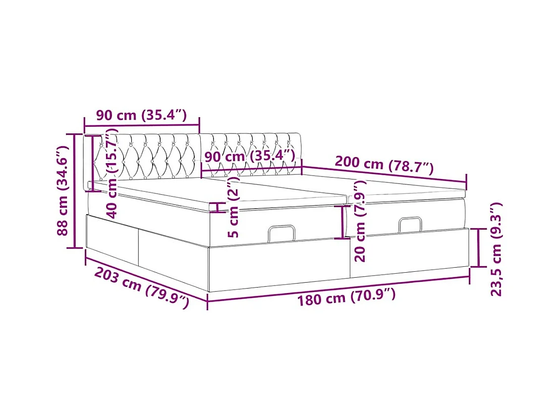 Ottoman bed met matrassen 180x200cm kunstleer zwart